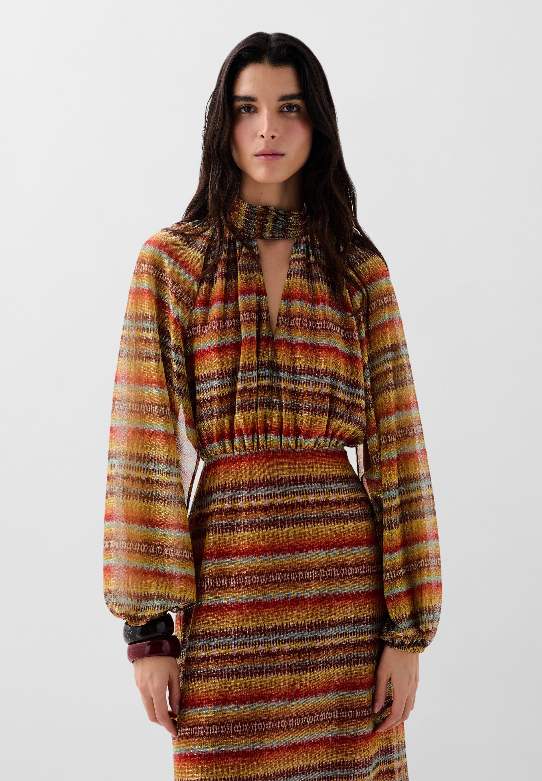 PRINTED ASYMMETRIC NECKLINE DRESS