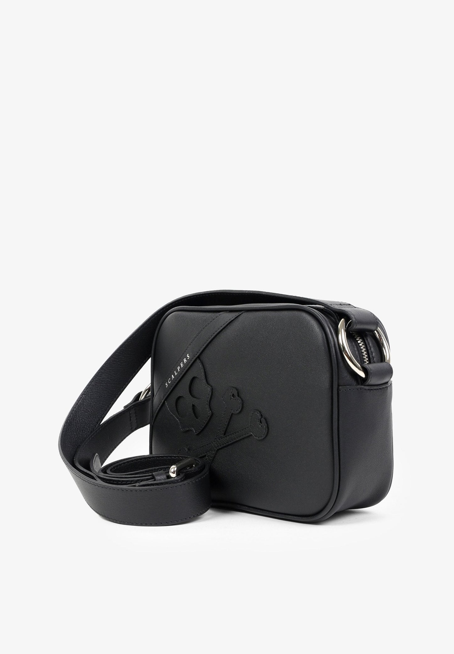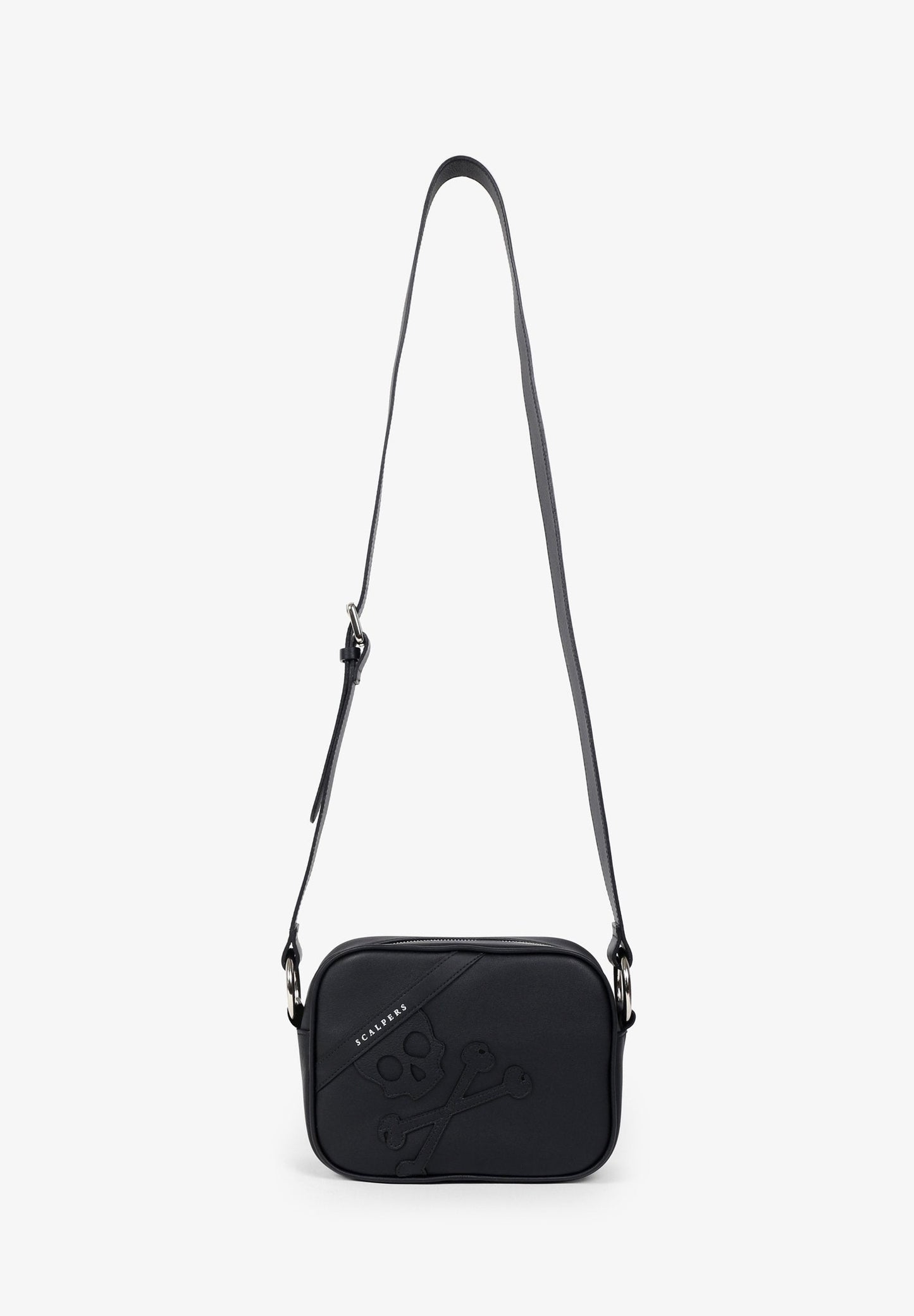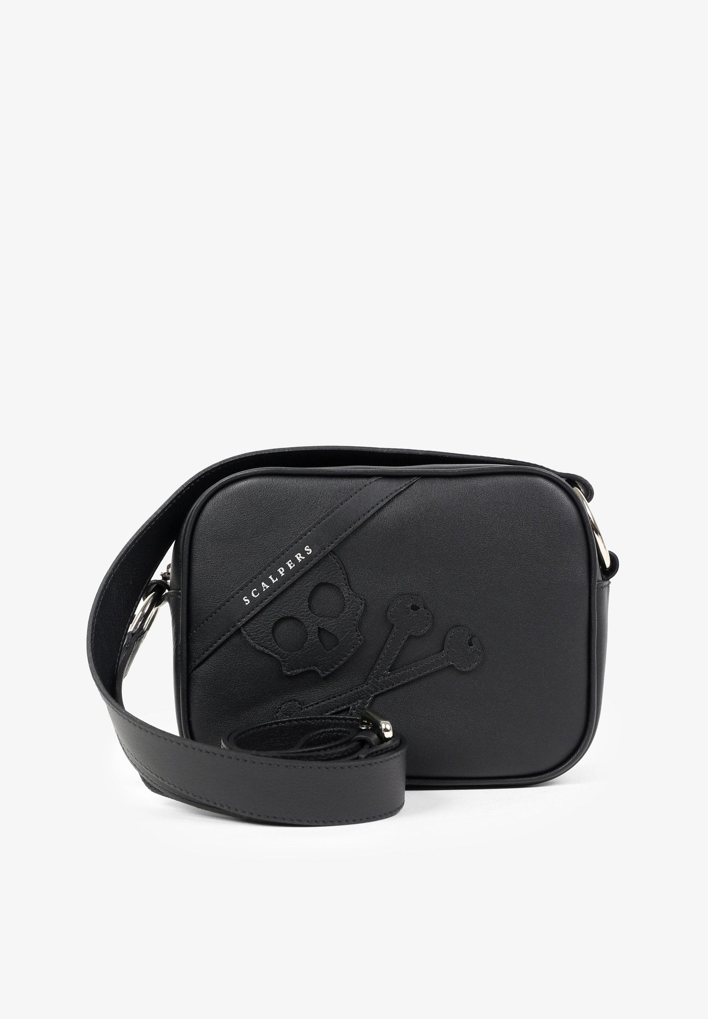 Sac maxi en cuir. Fermeture zippée, longue bandoulière réglable avec boucle et anneaux métalliques.