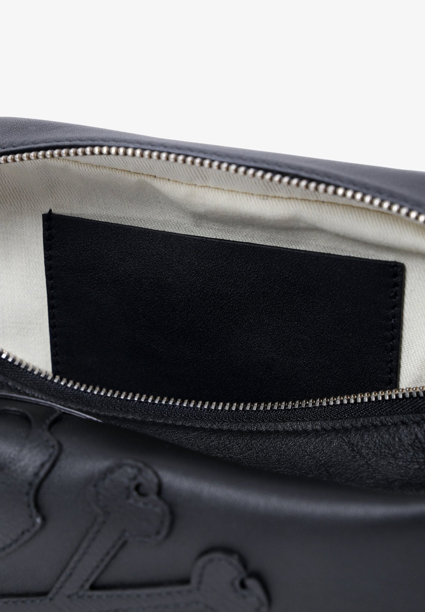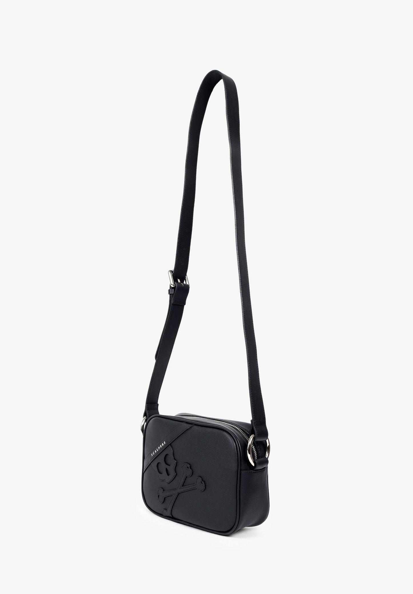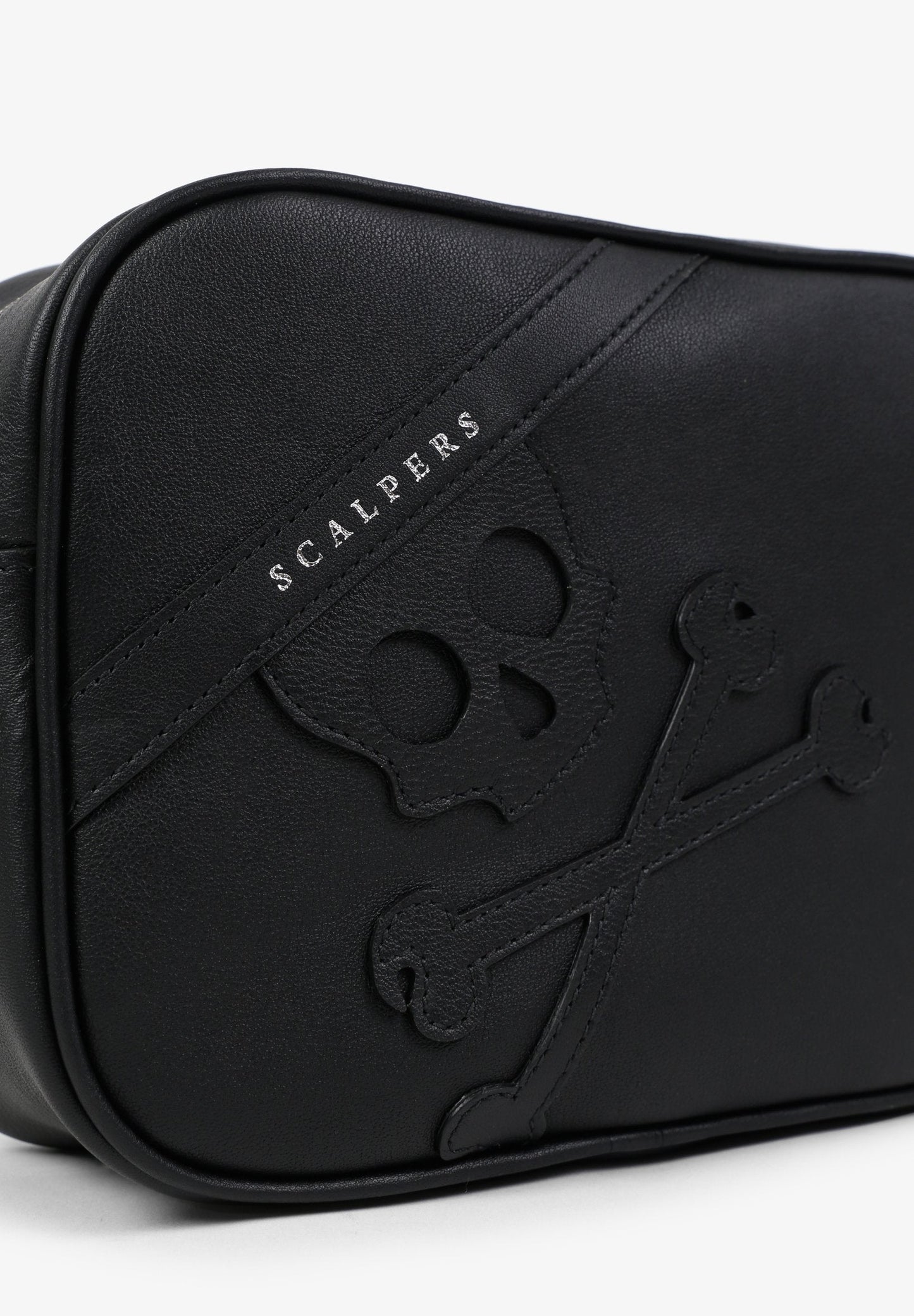 Sac maxi en cuir. Fermeture zippée, longue bandoulière réglable avec boucle et anneaux métalliques.