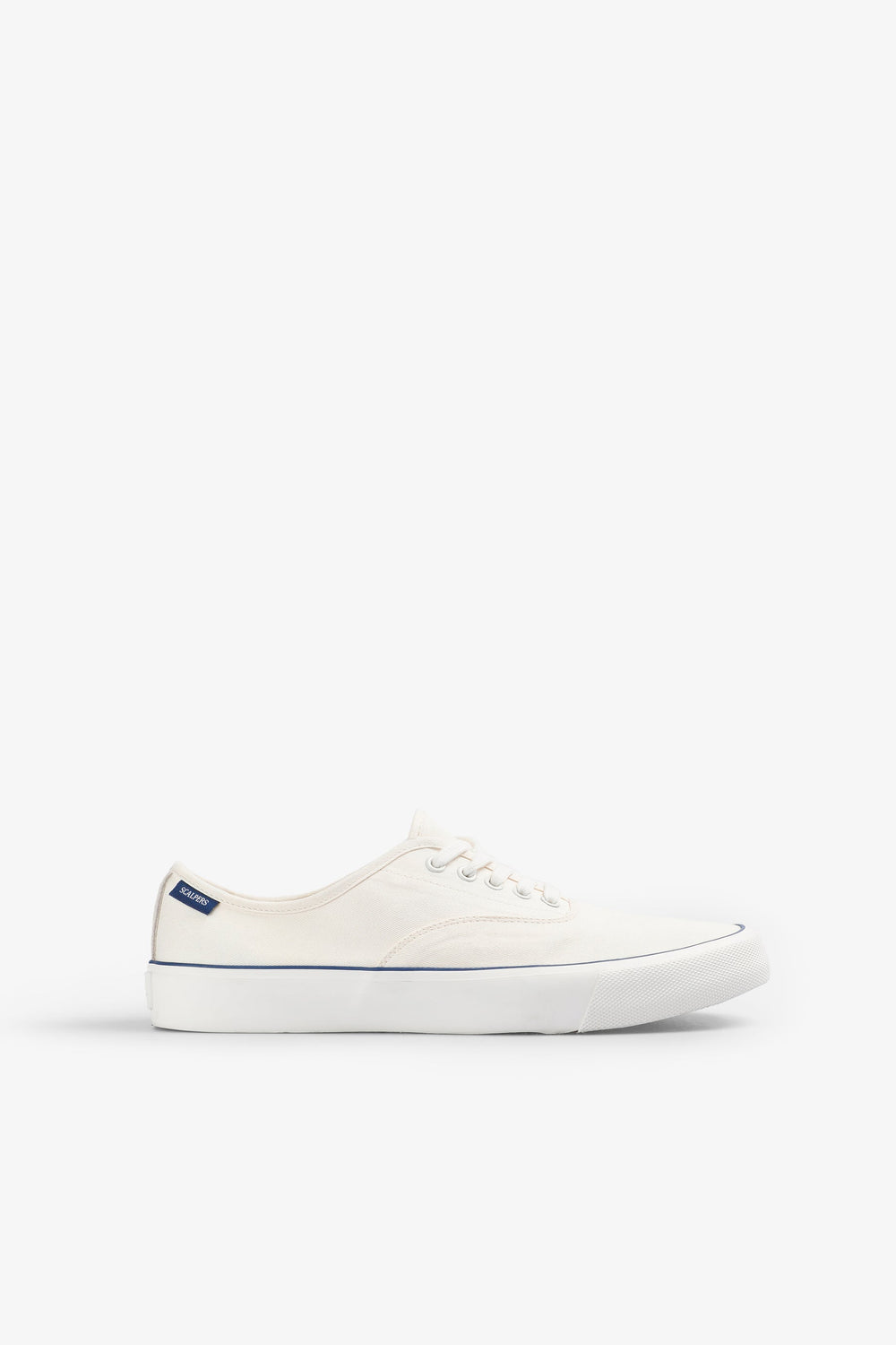 Tennis en toile. Lacets et semelle vulcanisée. Étiquette avec logo à l’arrière.