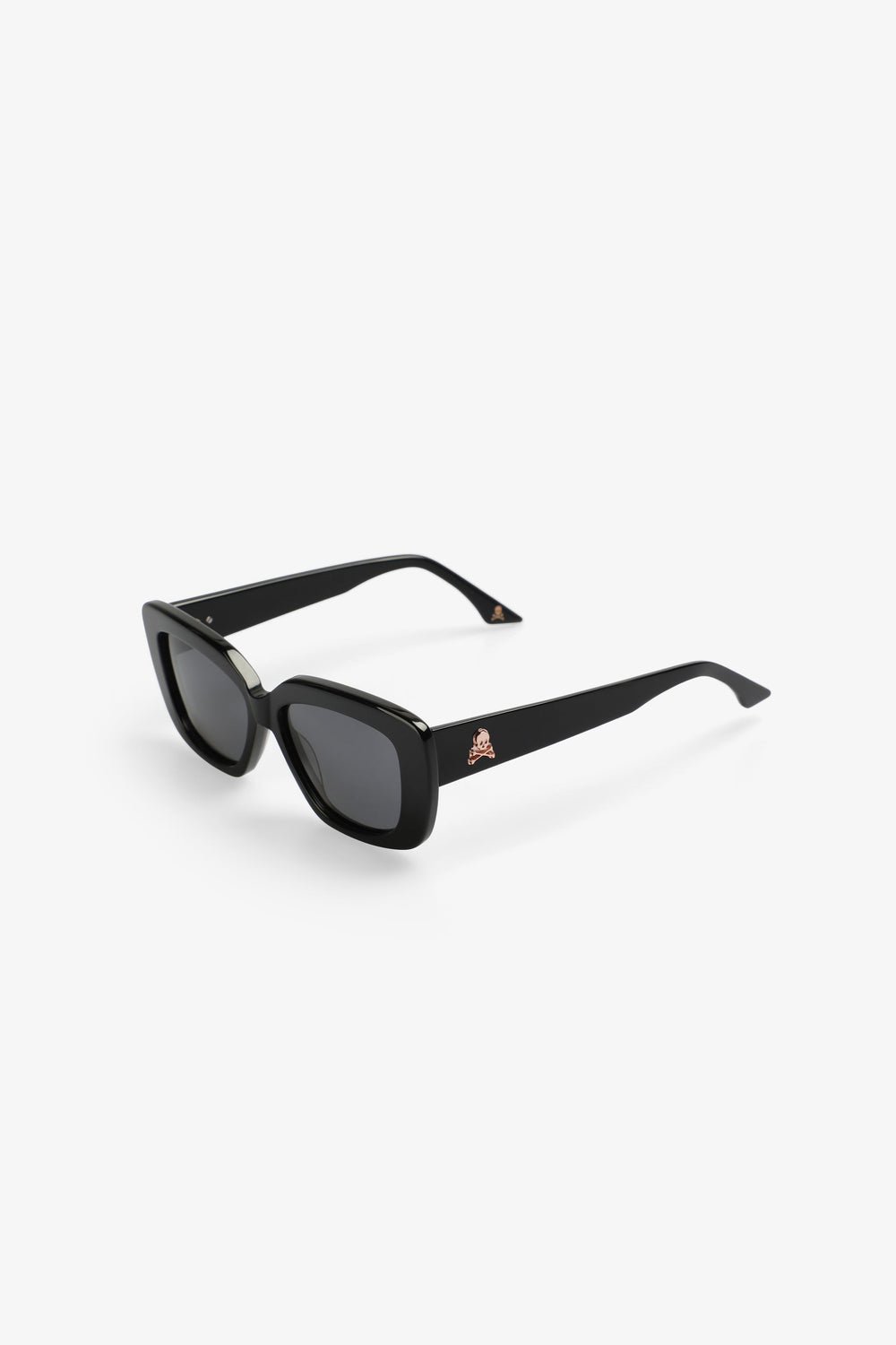 Sunglasses made of 100% acetate. Contrast metal skull detail on the side.