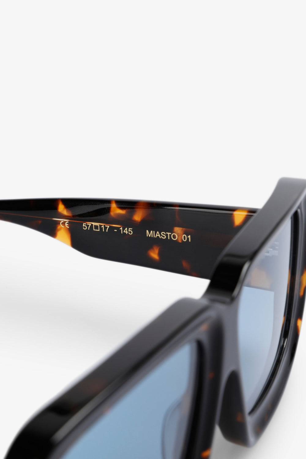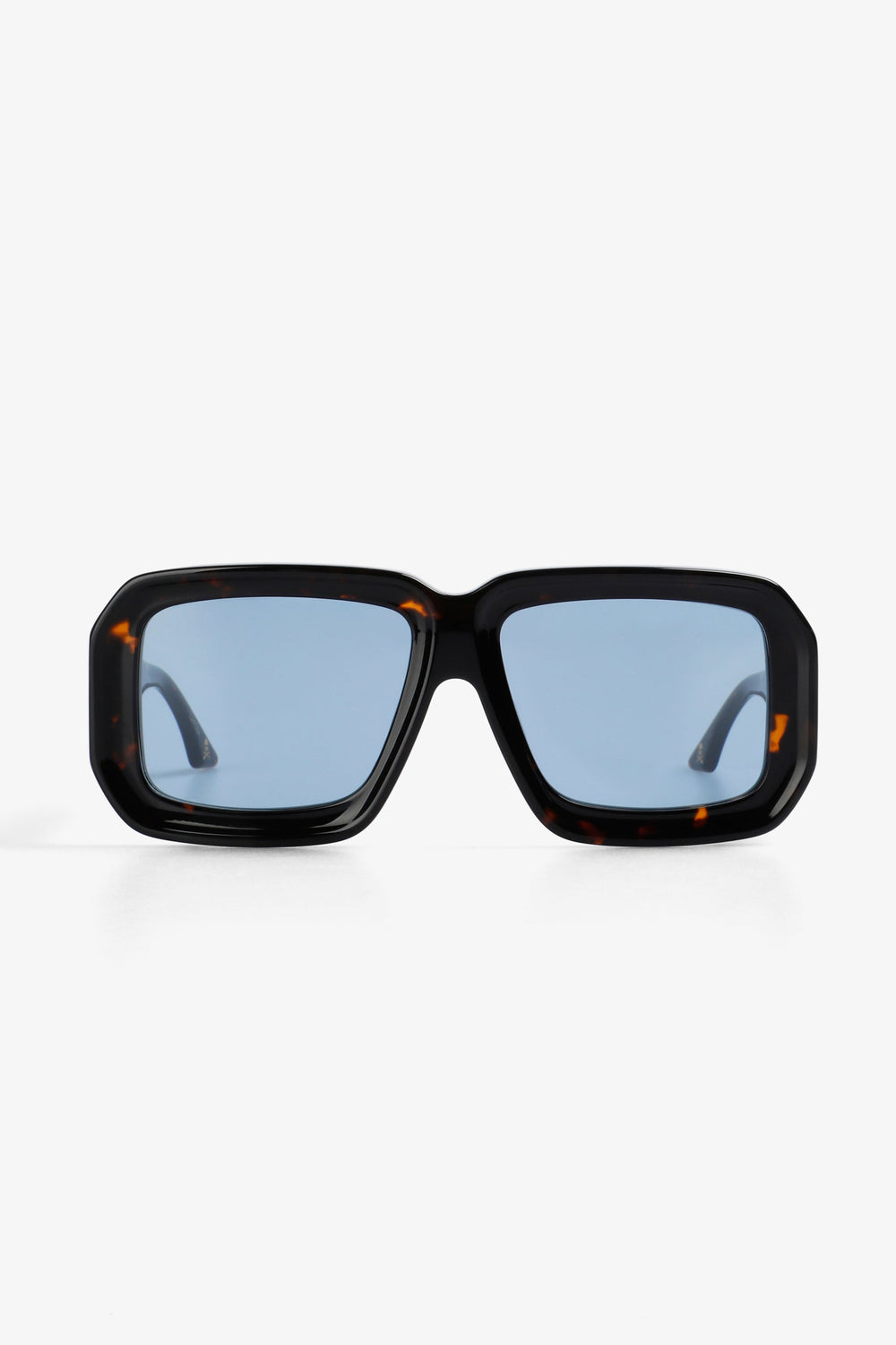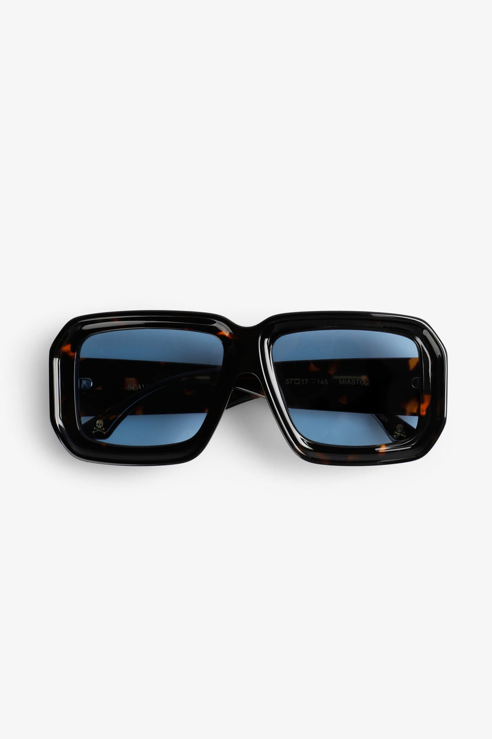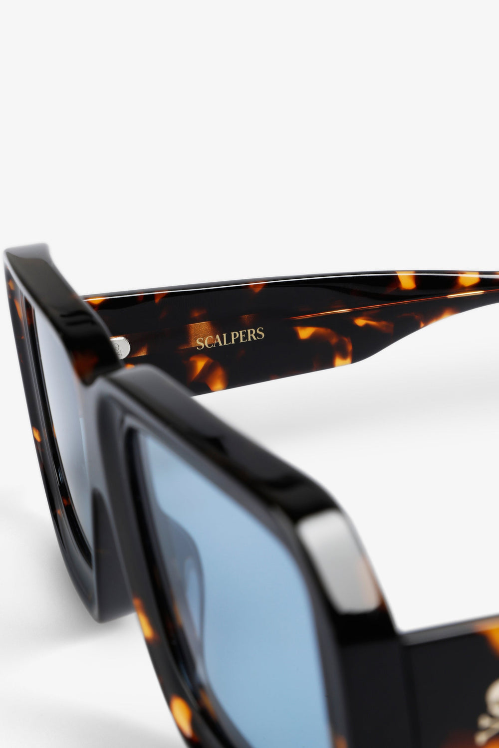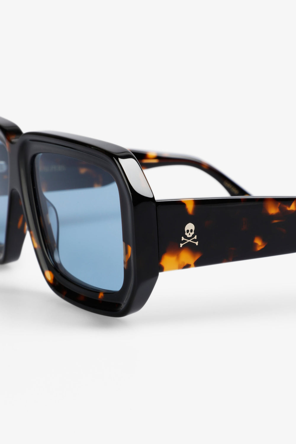 Tortoiseshell-finish resin frames. UV protection lenses. Includes a protective case. Logo detail at the arms.