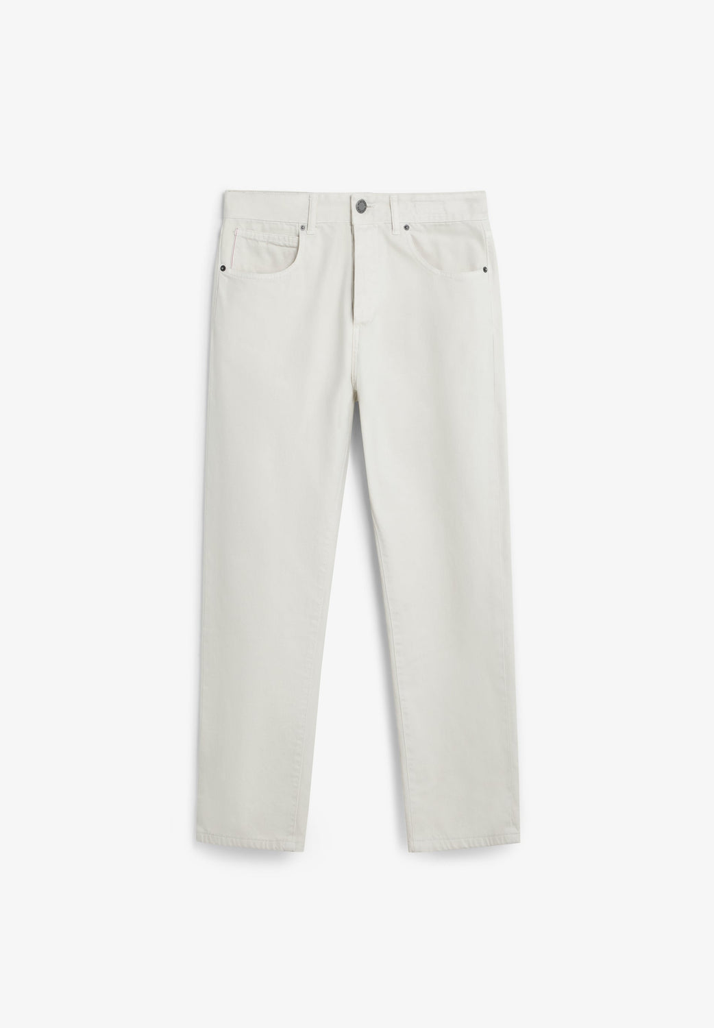 Straight trousers made of 100% cotton. Front and back pockets. Button and zip fastening. Belt loops at the waist. Logo label details on the belt and pocket.