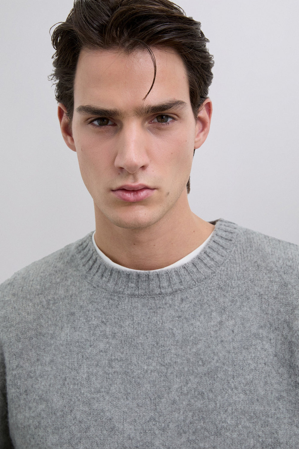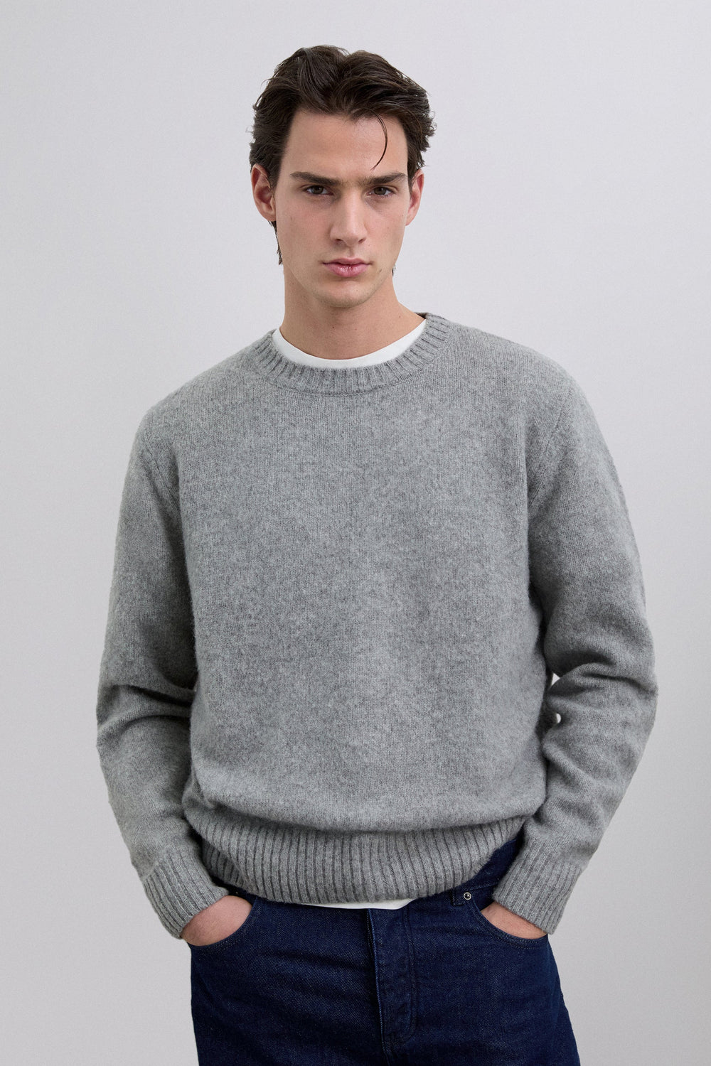 Sweater made of 100% wool. Brushed effect. Round neck. Long sleeves. Regular fit. Ribbed trim.