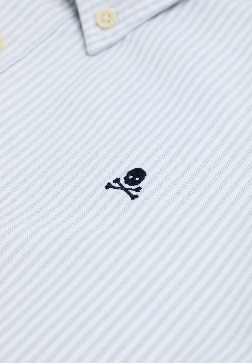 Oxford shirt made of 100% BCI cotton. Button fastening, Striped print. Long sleeves with button fastening. Contrast embroidered skull detail on the chest.