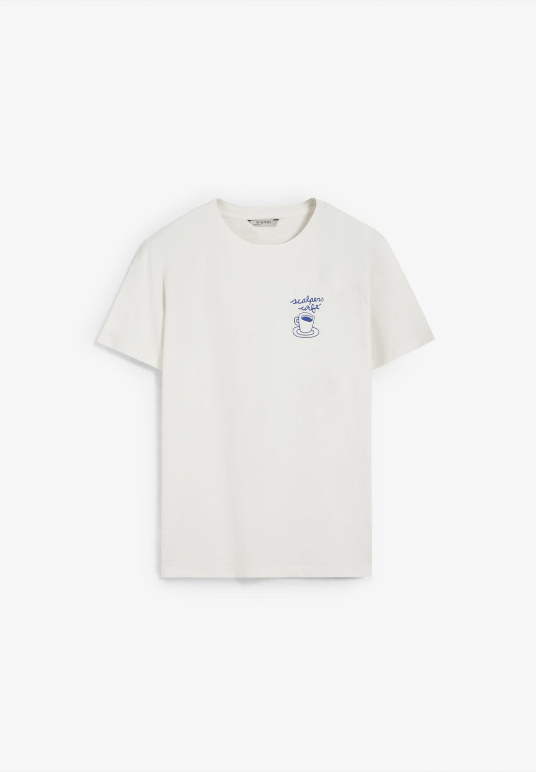 T-shirt made of 100% BCI cotton. Short sleeves. Round neck. Regular fit. Faded effect. Printed on chest and back. Ribbed collar.