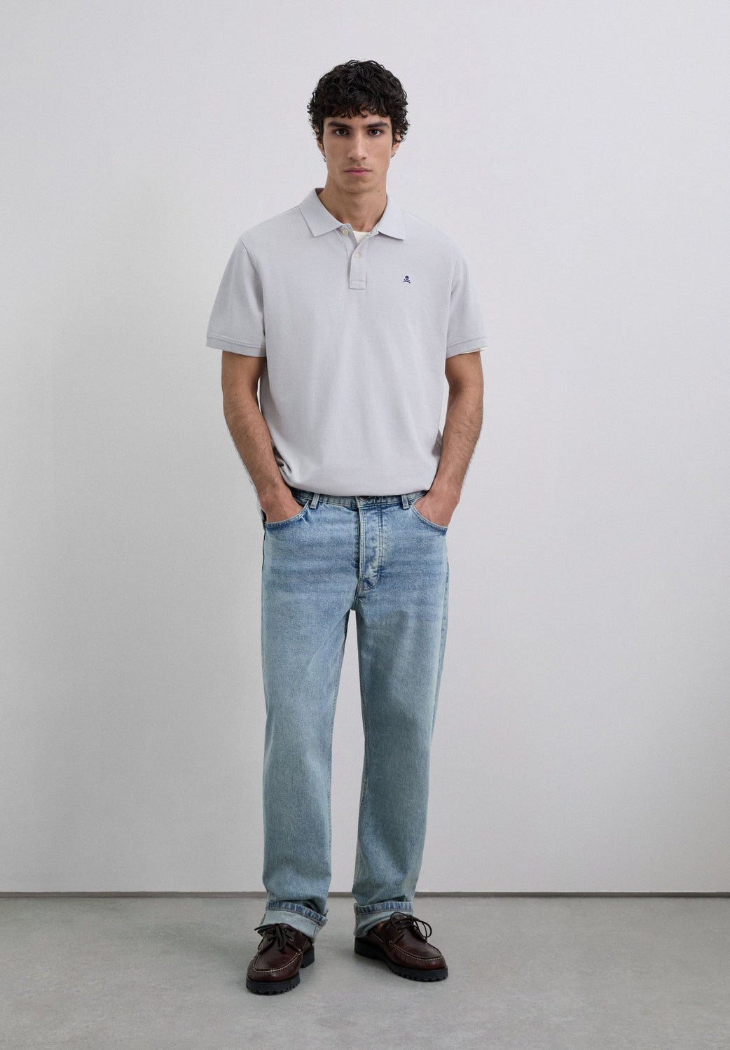 Pique polo shirt made of 100% organic cotton. Short sleeve. Regular fit. Two-button placket. Ribbed collar and cuffs. Contrast embroidered skull on the chest.