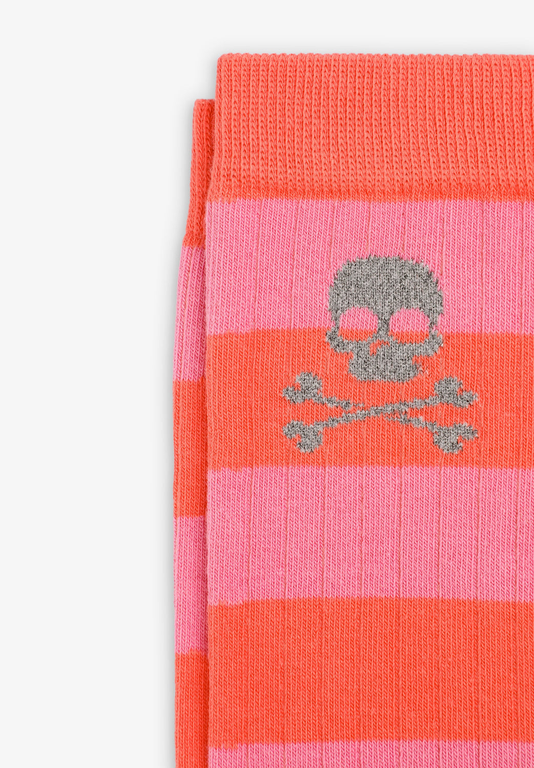 Socks made of BCI cotton. Stripe print. Contrast skull and logo.
