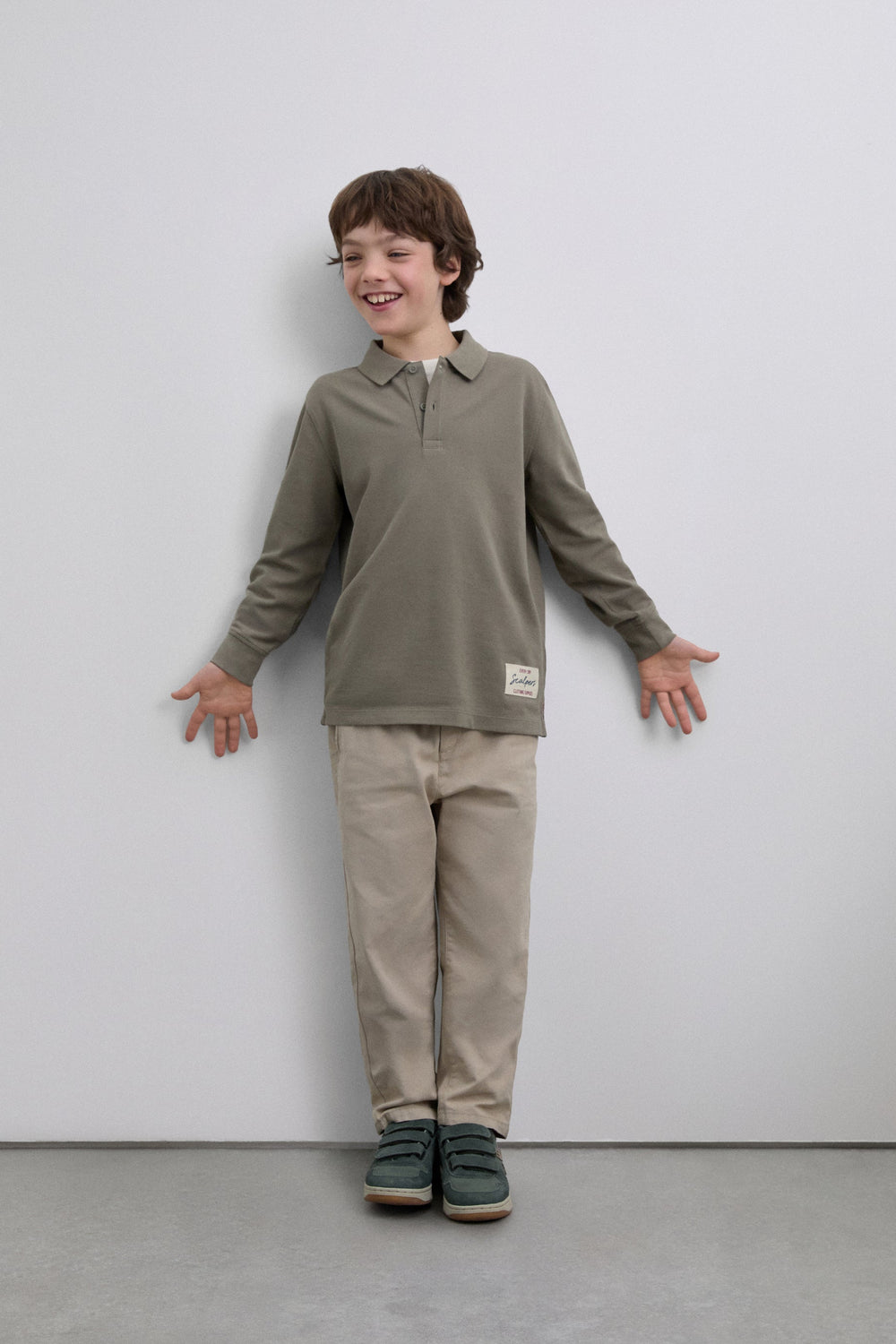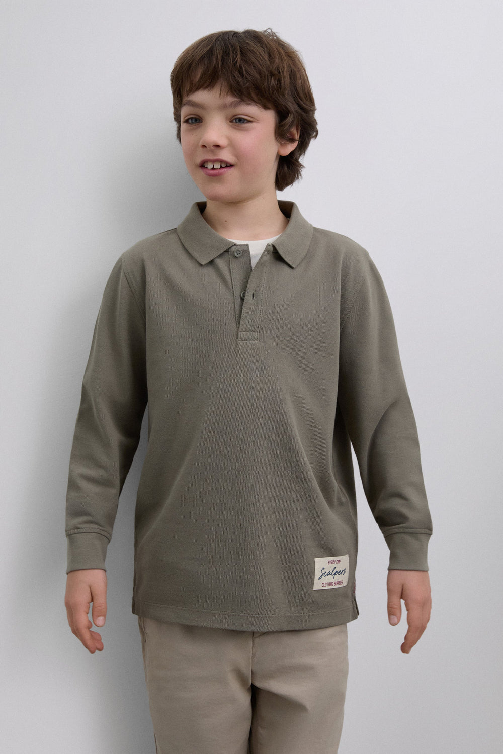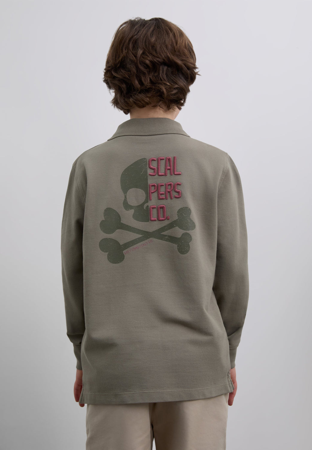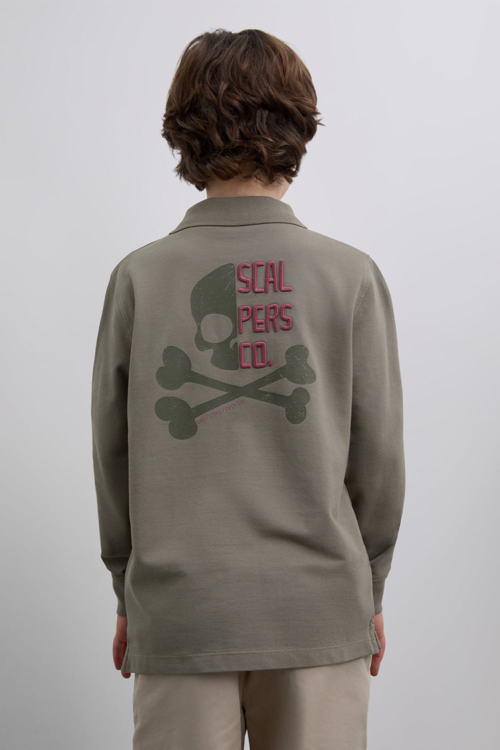 Polo shirt made of 100% BCI cotton. Regular Fit. Long sleeves. Classic collar with buttons. Embroidered logo and skull print on back. Embroidered patch detail on the lower front.