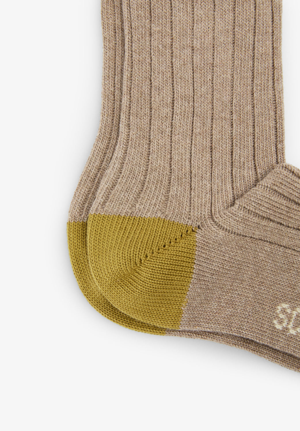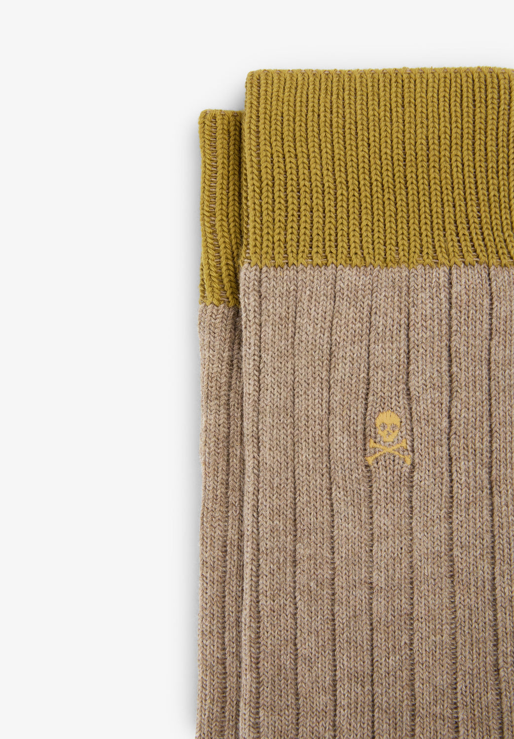 Ribbed socks made of an organic cotton blend. Contrast toe, heel and ankle. Contrast embroidered skull on the leg.