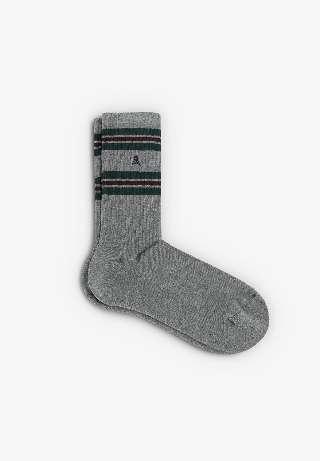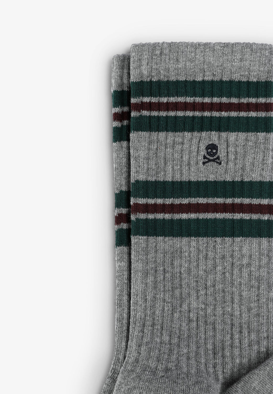 Socks made of an organic cotton blend. Striped detail. Contrast embroidered skull detail.