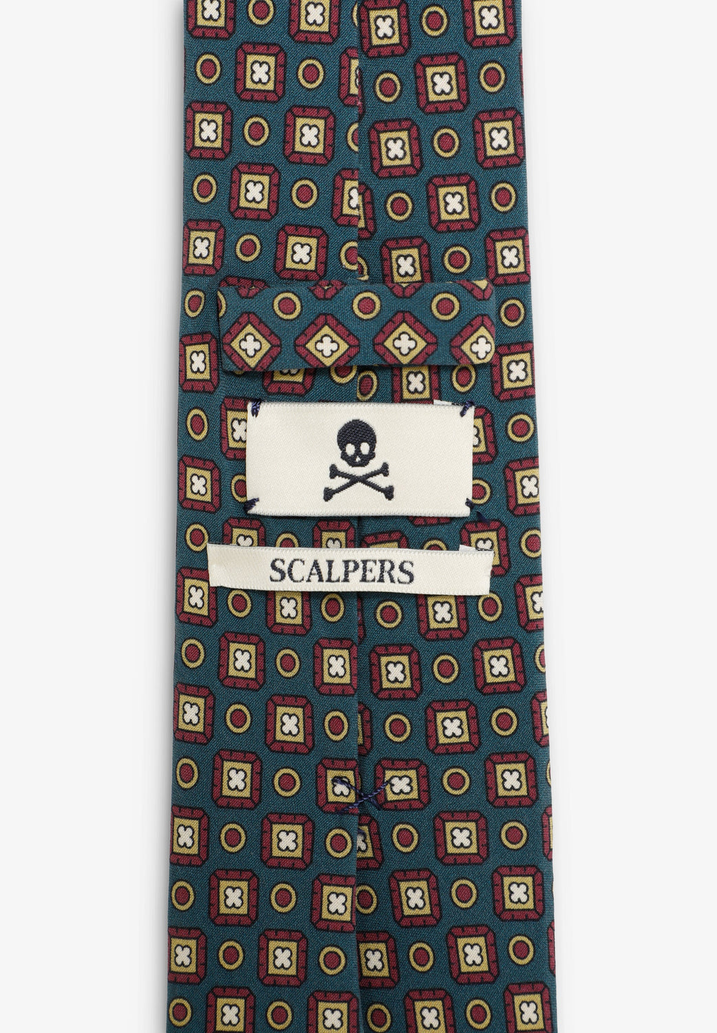 100% silk tie with geometric logo print and lined, 7.5 cm wide.