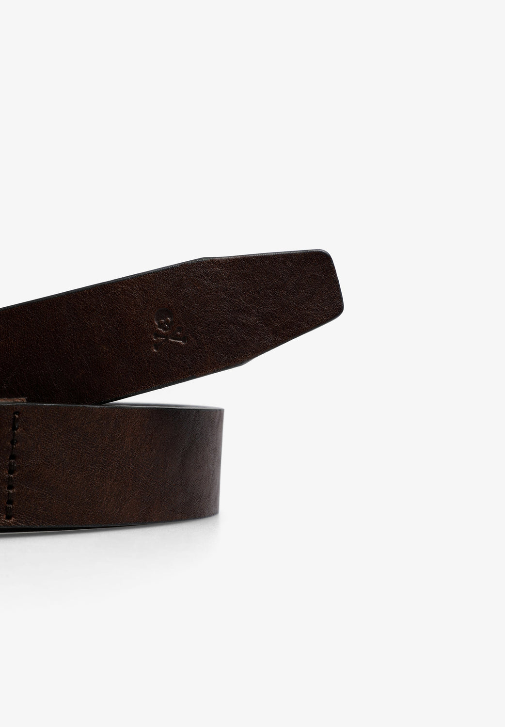 Classic belt made of 100% leather. Skull detail. Metal buckle.