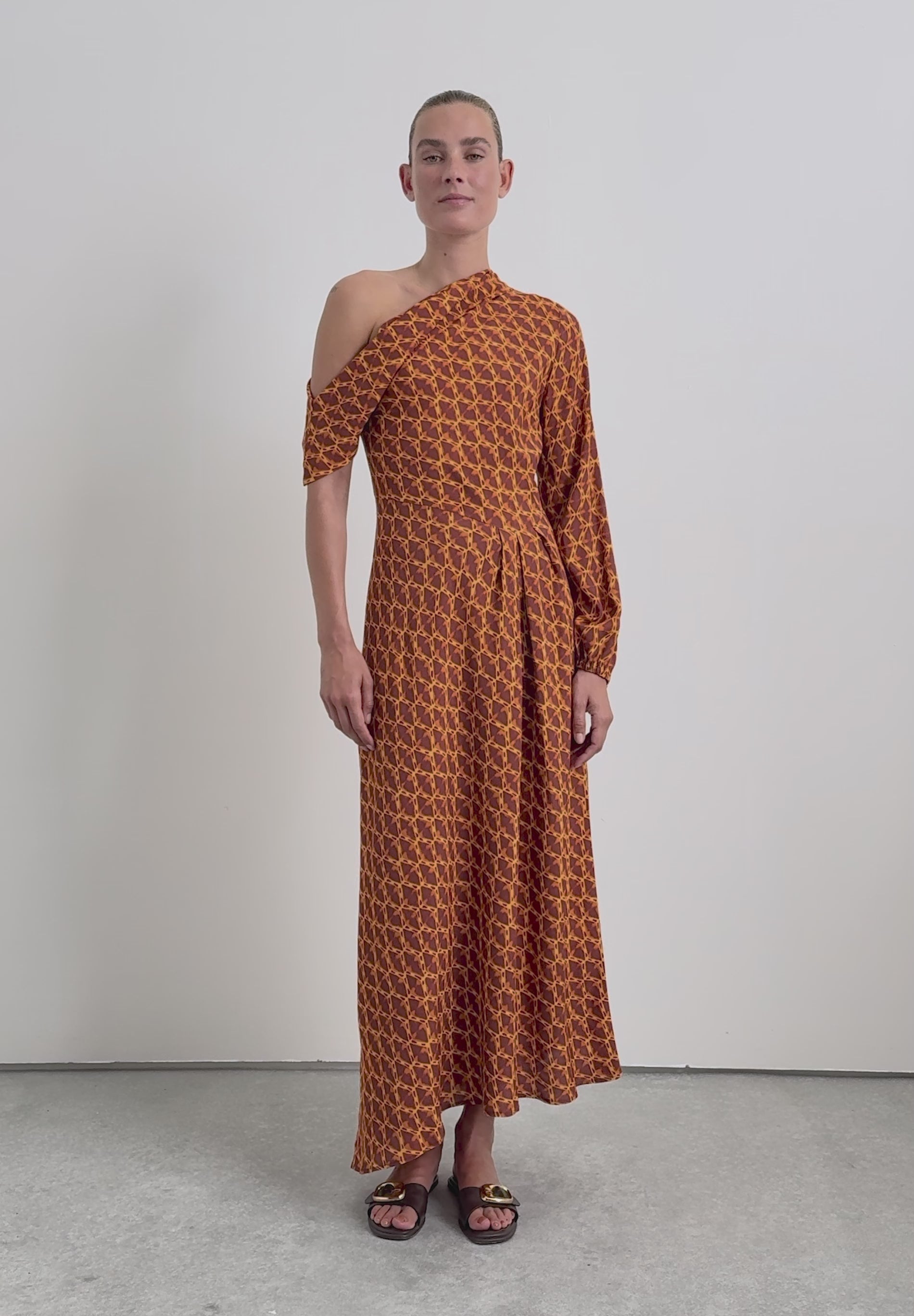 PRINTED ASYMMETRIC NECKLINE DRESS