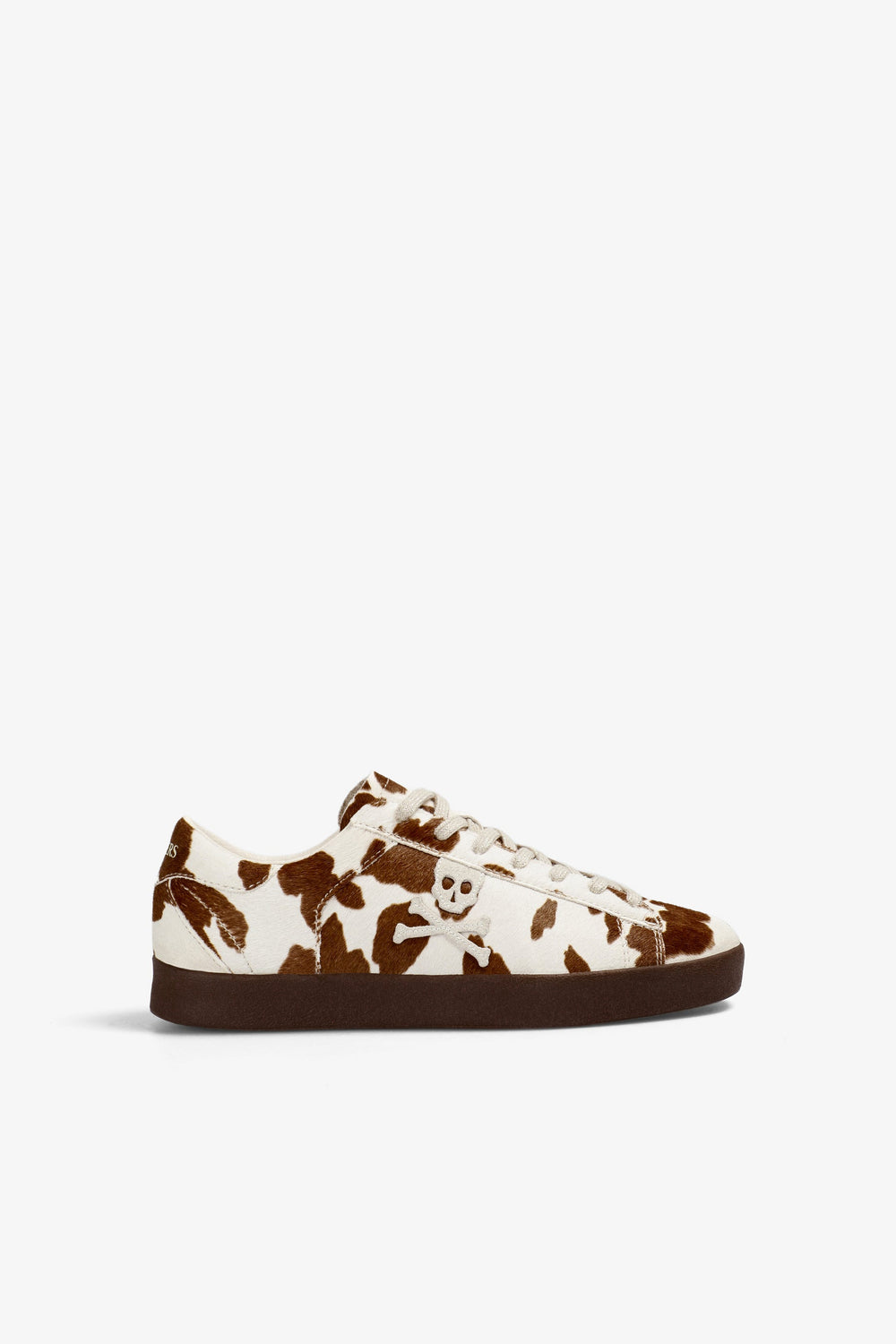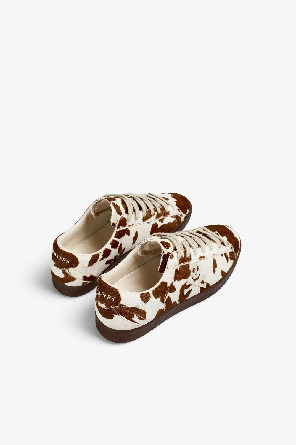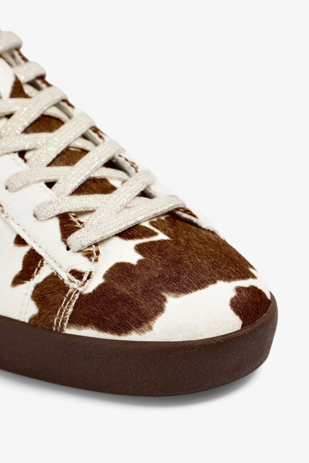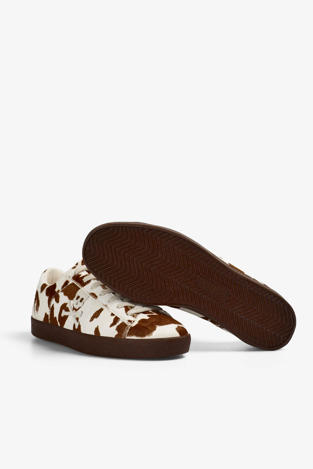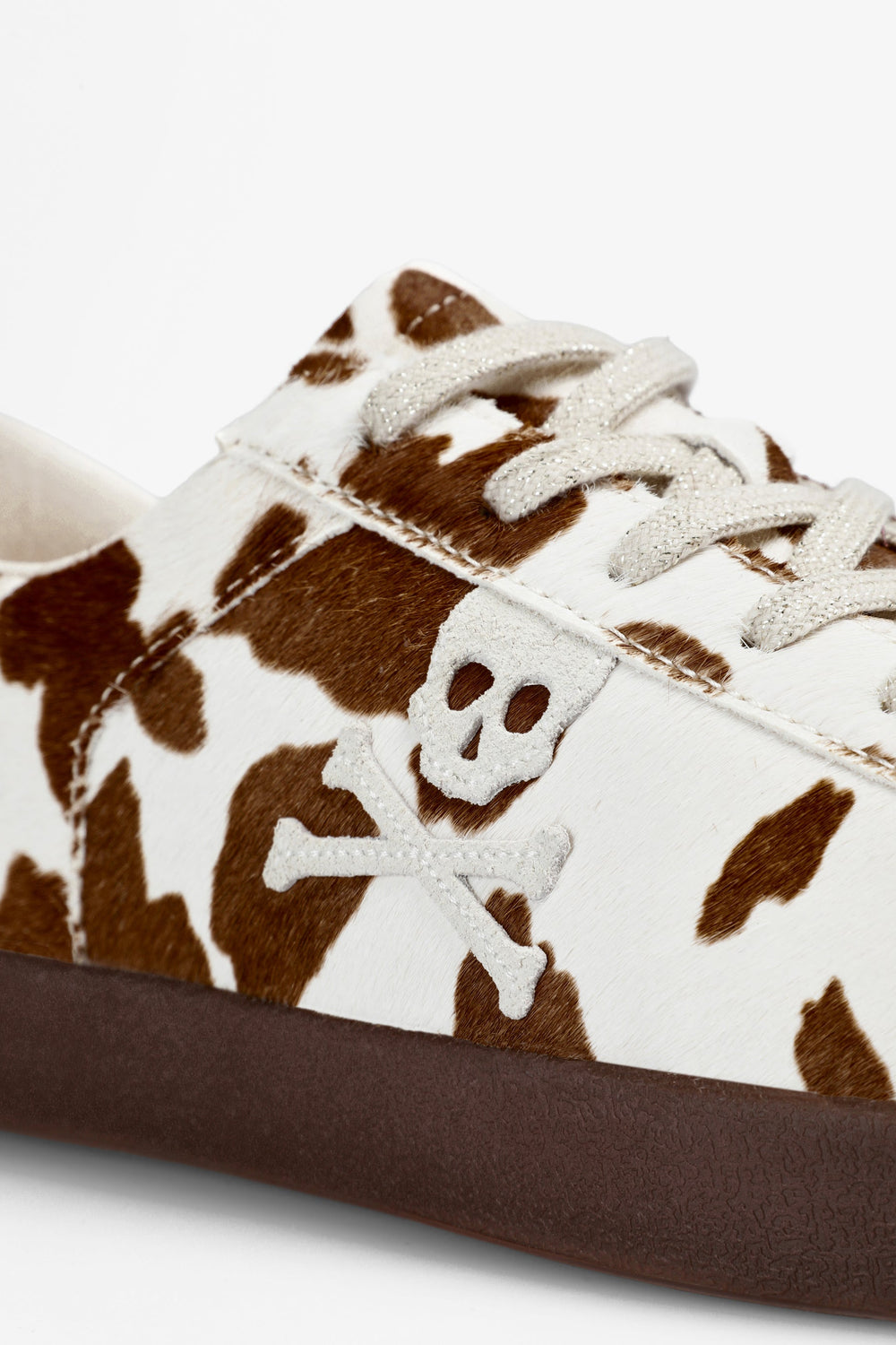 Sneakers made of 100% leather. Finished with animal print fur. Lace-up fastening. Skull detail on the side.