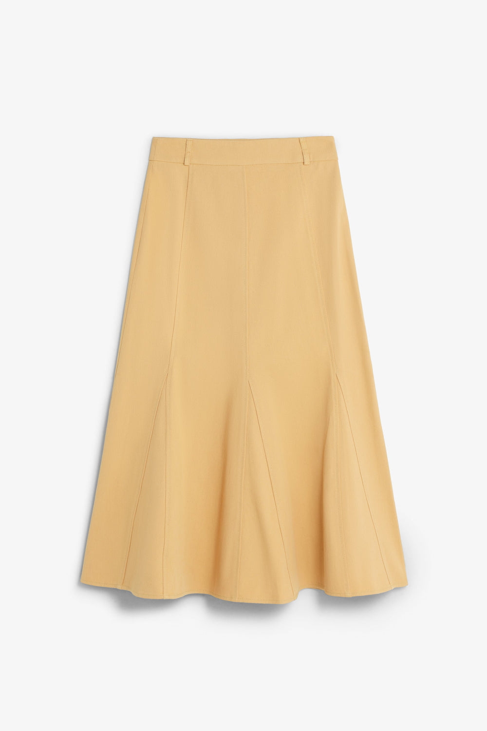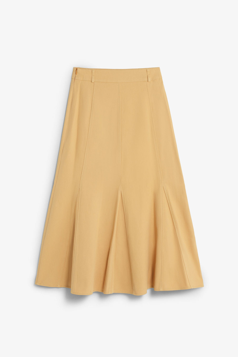 Skirt with belt loops, elasticated waist and pleats. Matching lining. Side fastening with concealed zip.