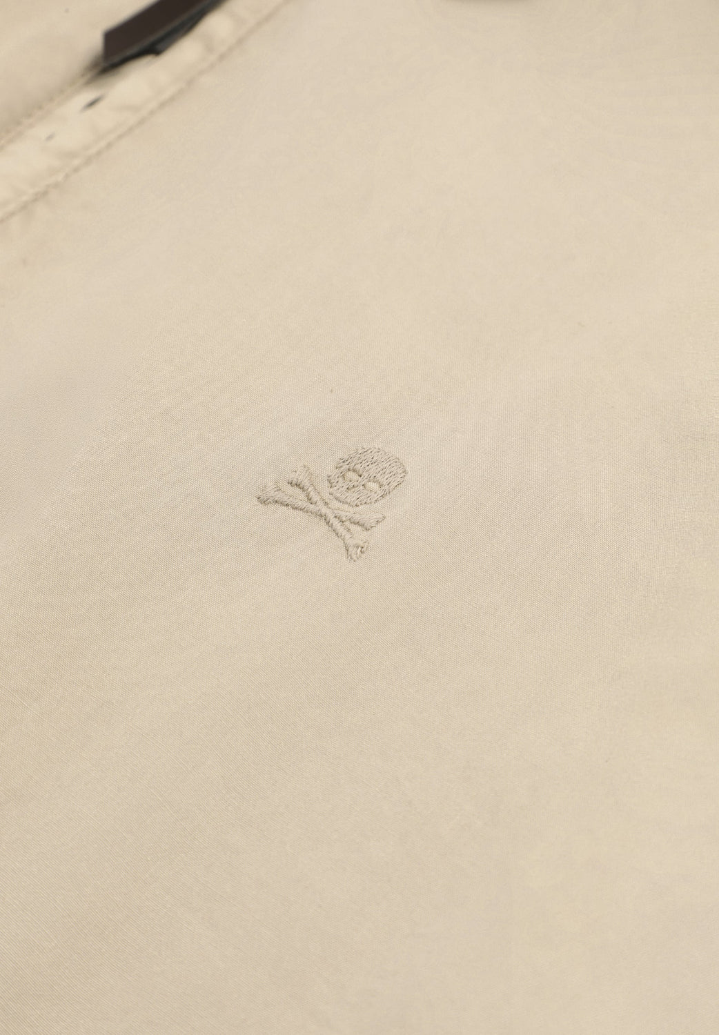 Bomber jacket made of 100% BCI cotton. Two side pockets with ribbed trim. Cross-strap collar with button fastening. Front double slider zip fastening. Matching embroidered skull on the chest.