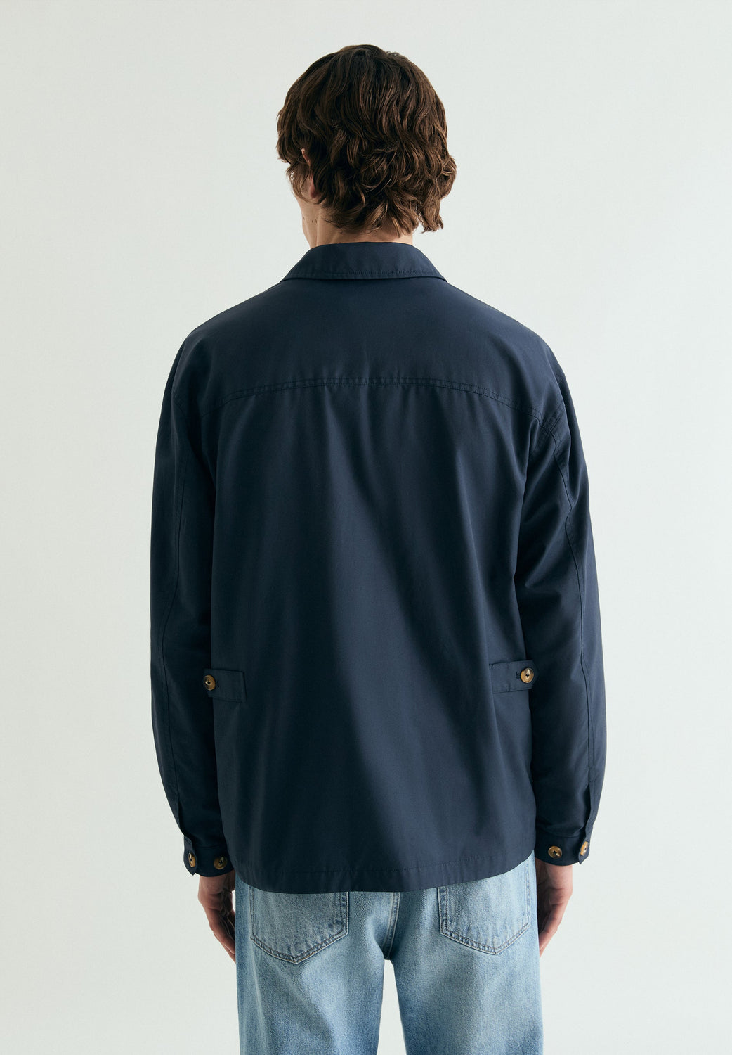 Jacket made of a cotton blend. Four pockets. Military style. Front button fastening. Angled flap pockets and shirt collar.