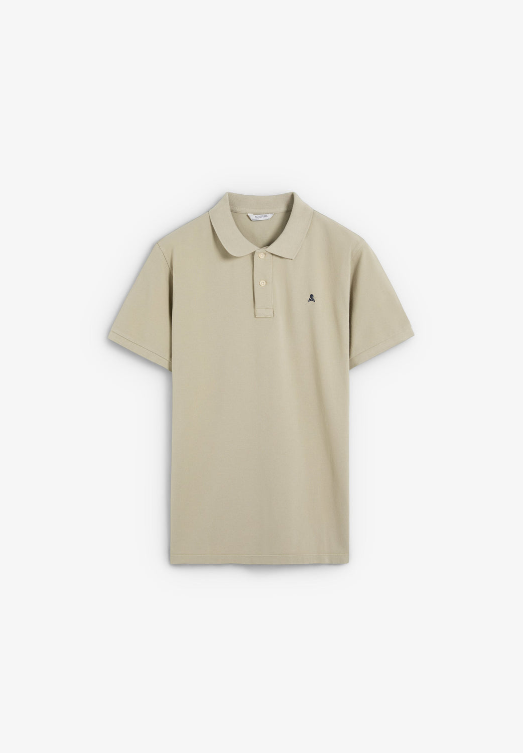 Pique polo shirt made of 100% BCI cotton. Short sleeve. Regular fit. Two-button placket. Matching embroidered skull on the chest. Ribbed collar and cuffs.