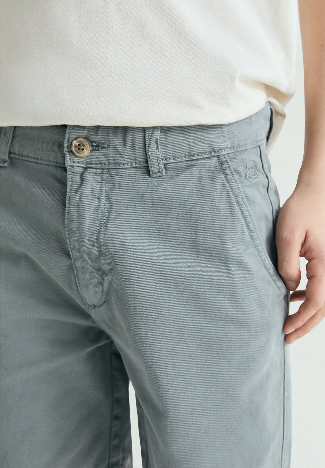 Bermuda shorts made of 100% organic cotton. Regular Fit. Belt loops and slanted pockets. Zip and button fastening. Matching embroidered skull on the pocket.