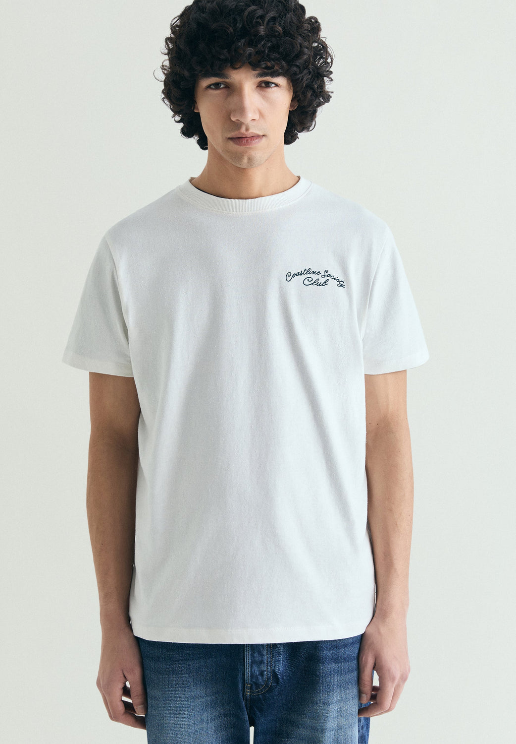 T-shirt made of a cotton blend. Round neck and short sleeves. Regular Fit. Back print and embroidered detail on the chest.