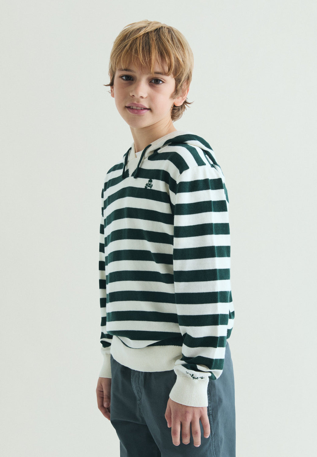 Hooded sweater with long sleeves made of 100% BCI cotton. Contrast stripe design and ribbed trim. Embroidered logo detail on the chest.