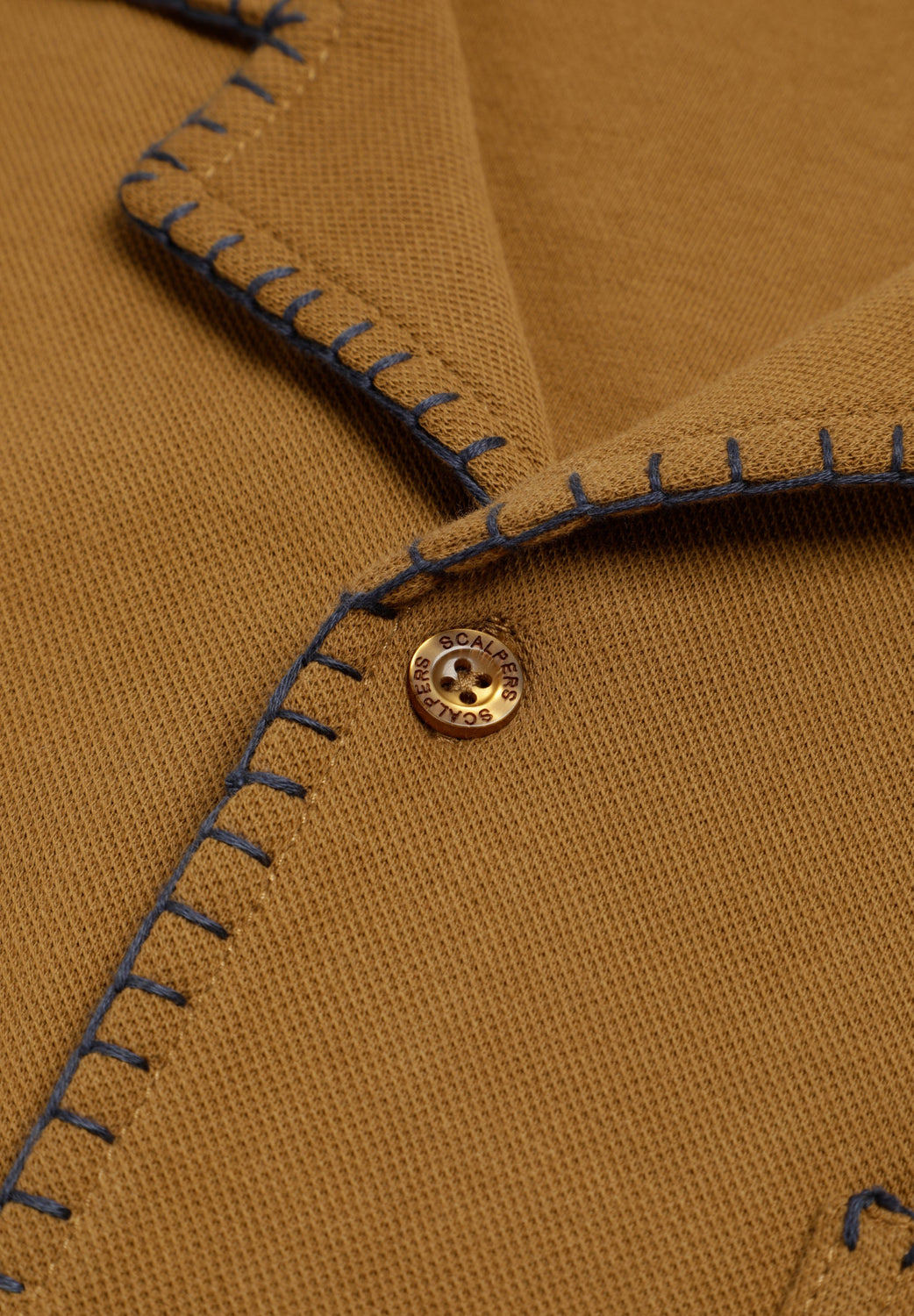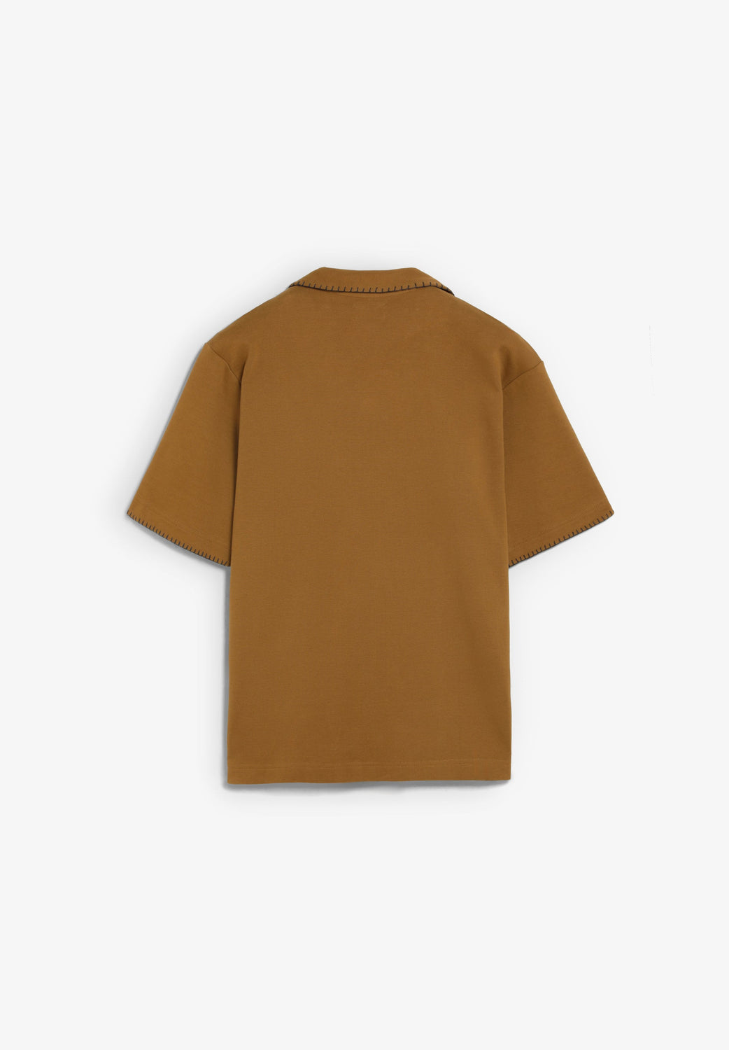 Shirt made of a cotton blend. Slim fit. Shirt collar and short sleeves. Front button fastening. Patch pocket on the front. Contrast piping.