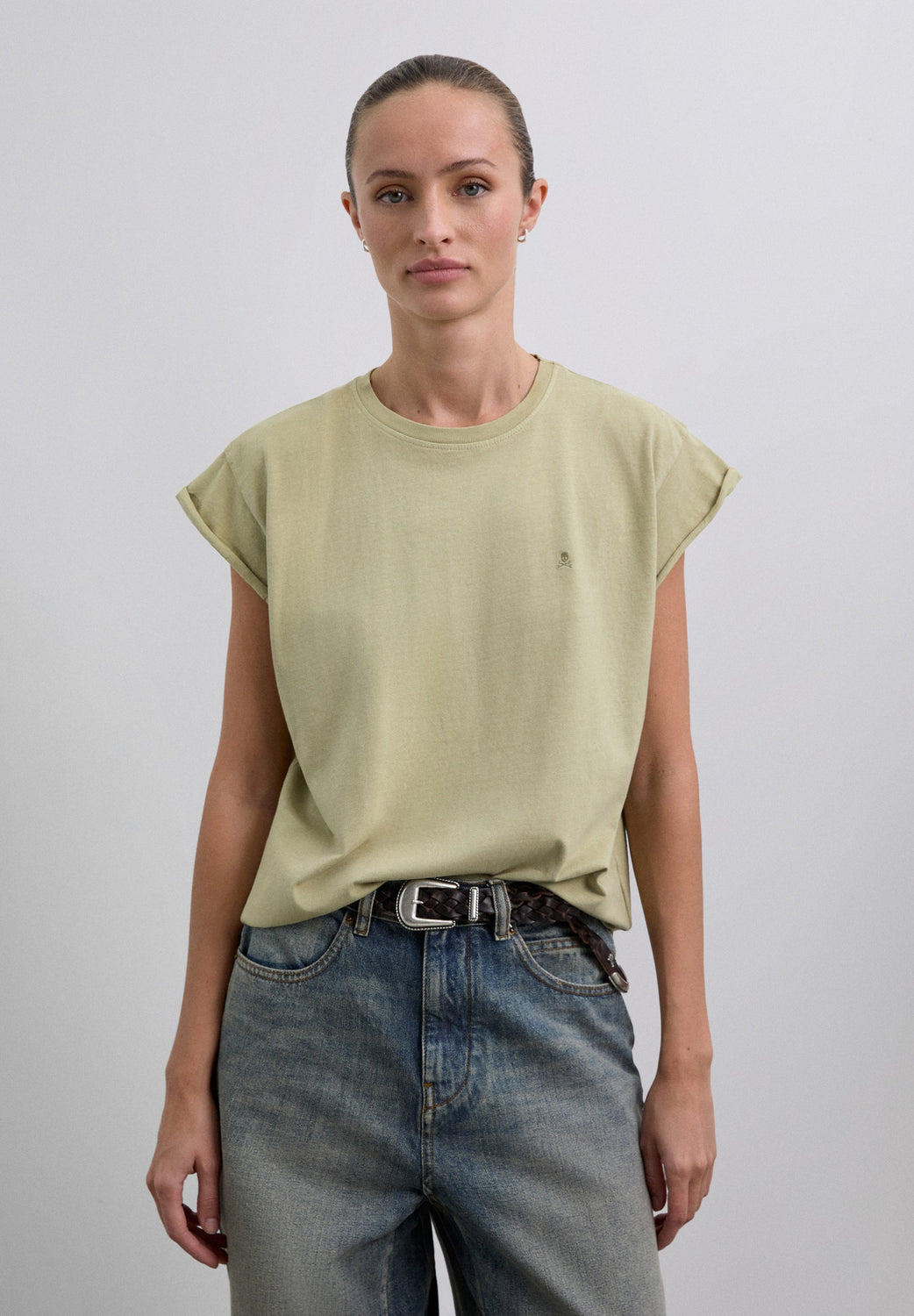 T-shirt made of 100% organic cotton. Regular fit, round neck and sleeveless. Matching embroidered logo detail on the chest.