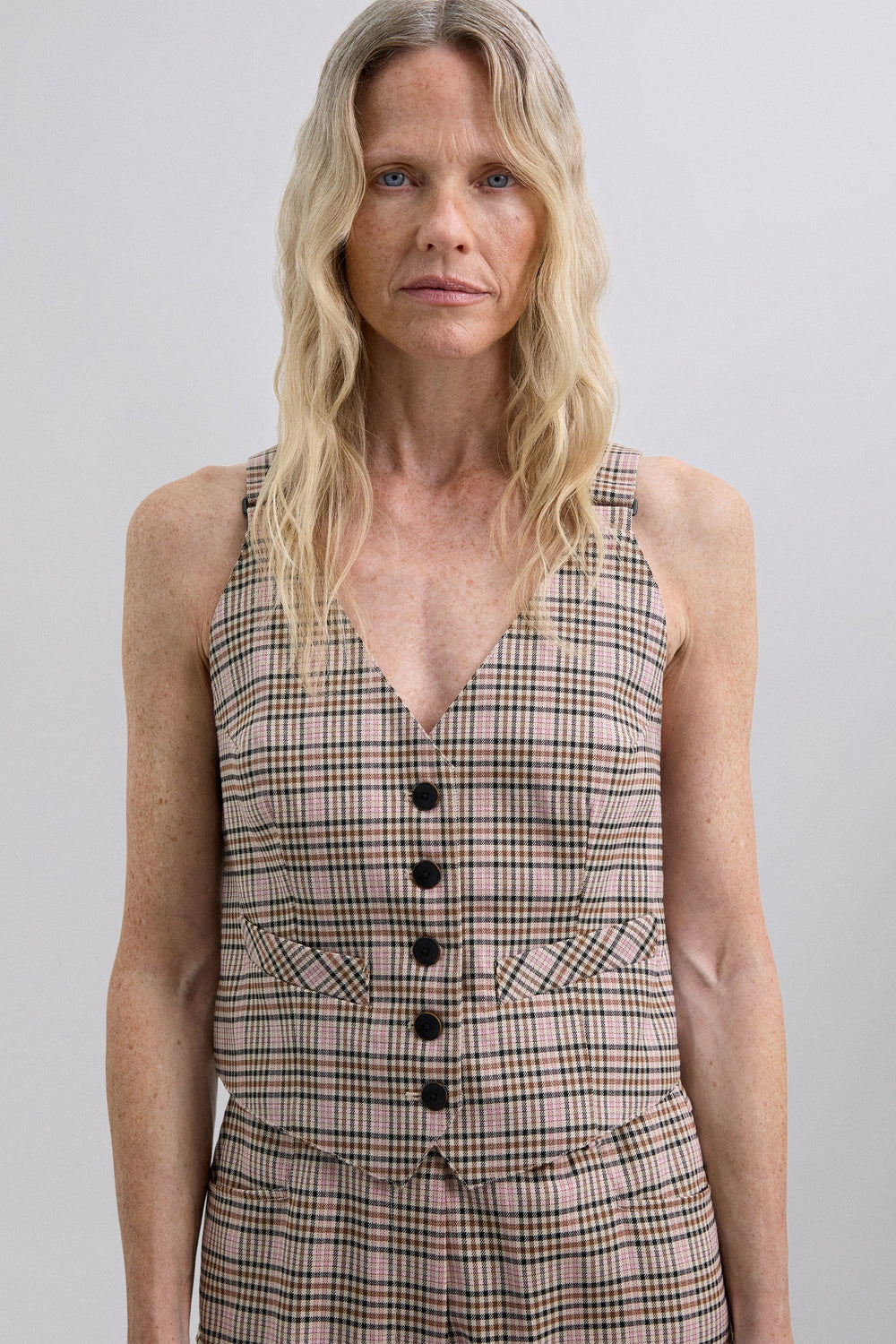 CHECK GILET WITH BRACES