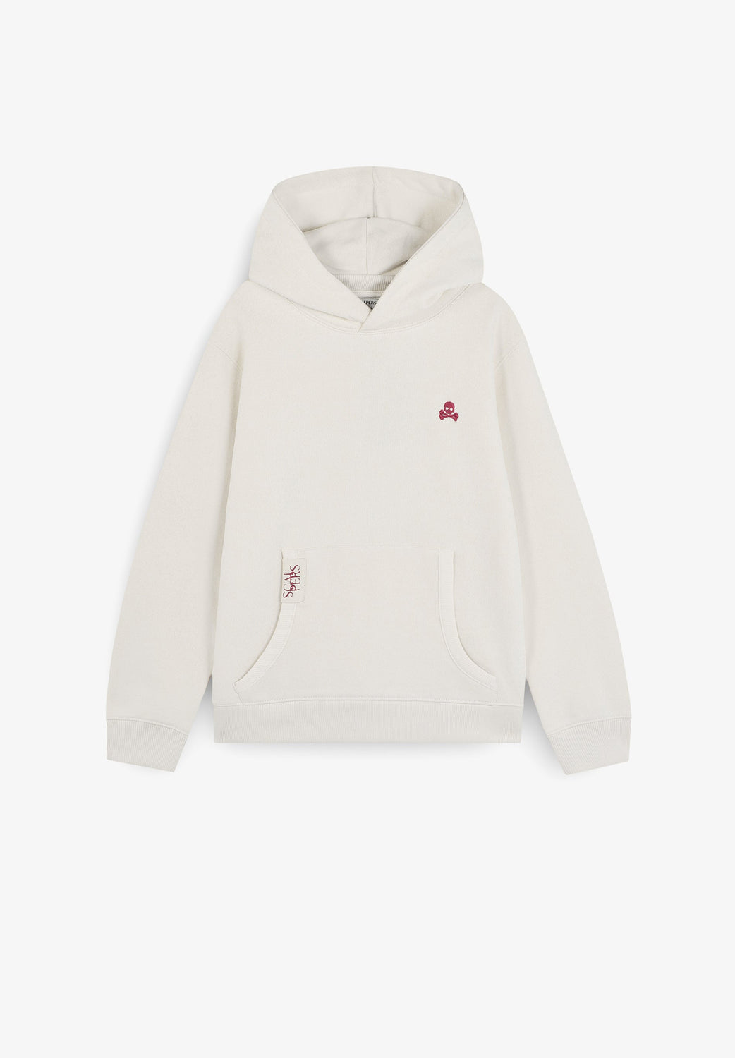 Sweatshirt with hood made of 100% BCI cotton. Long sleeves. Contrast embroidered skull detail on the chest and embroidered logo on the back. Front pocket pouch pocket with contrast logo detail. Ribbed trim on waistband and cuffs.
