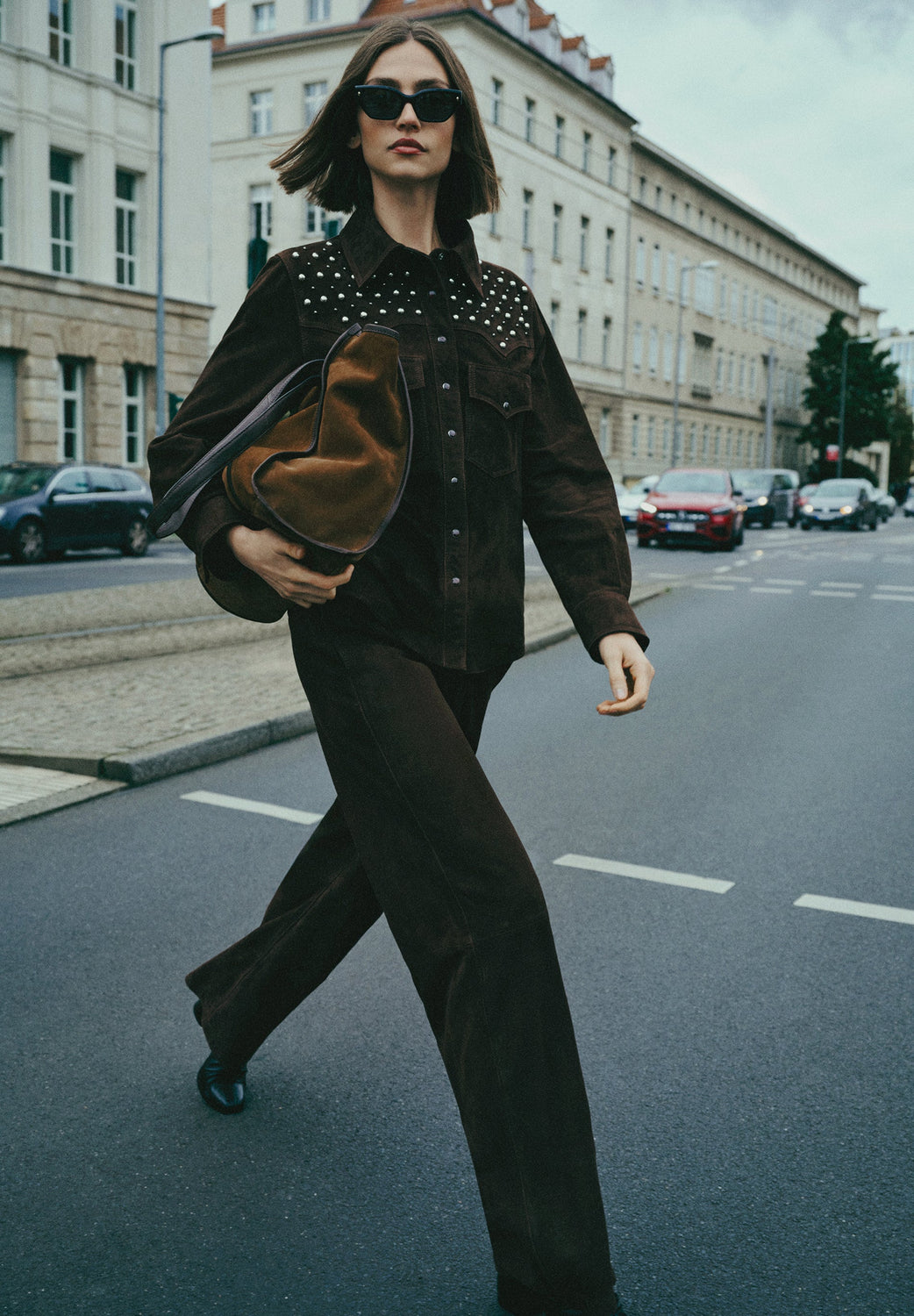 SUEDE SHIRT WITH STUDS