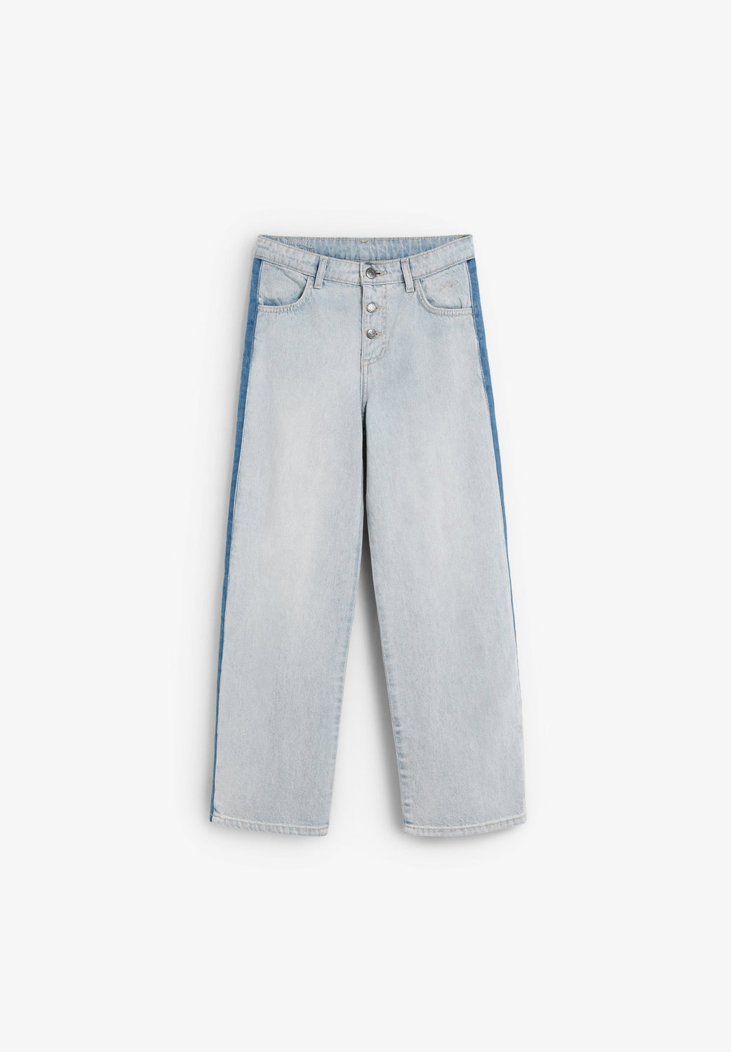 Wide led jeans made of 100% BCI cotton. Two button and zip fastening. Belt loops at the waist. Contrast seam detail on the side. 100% cotton lining.