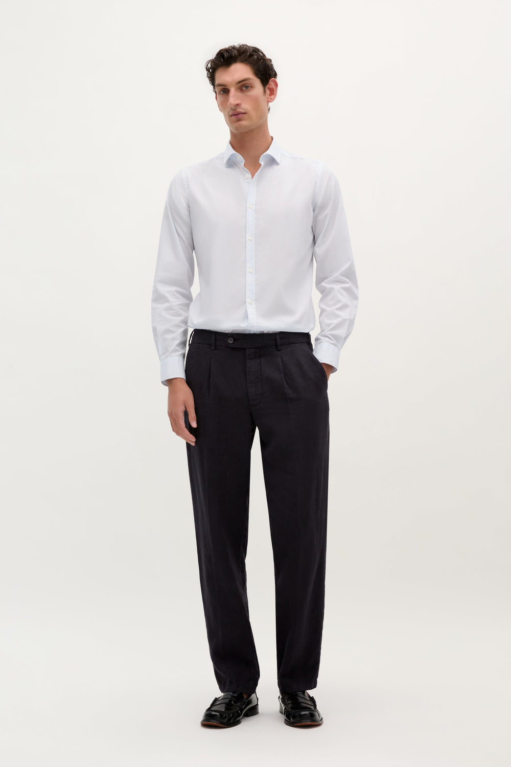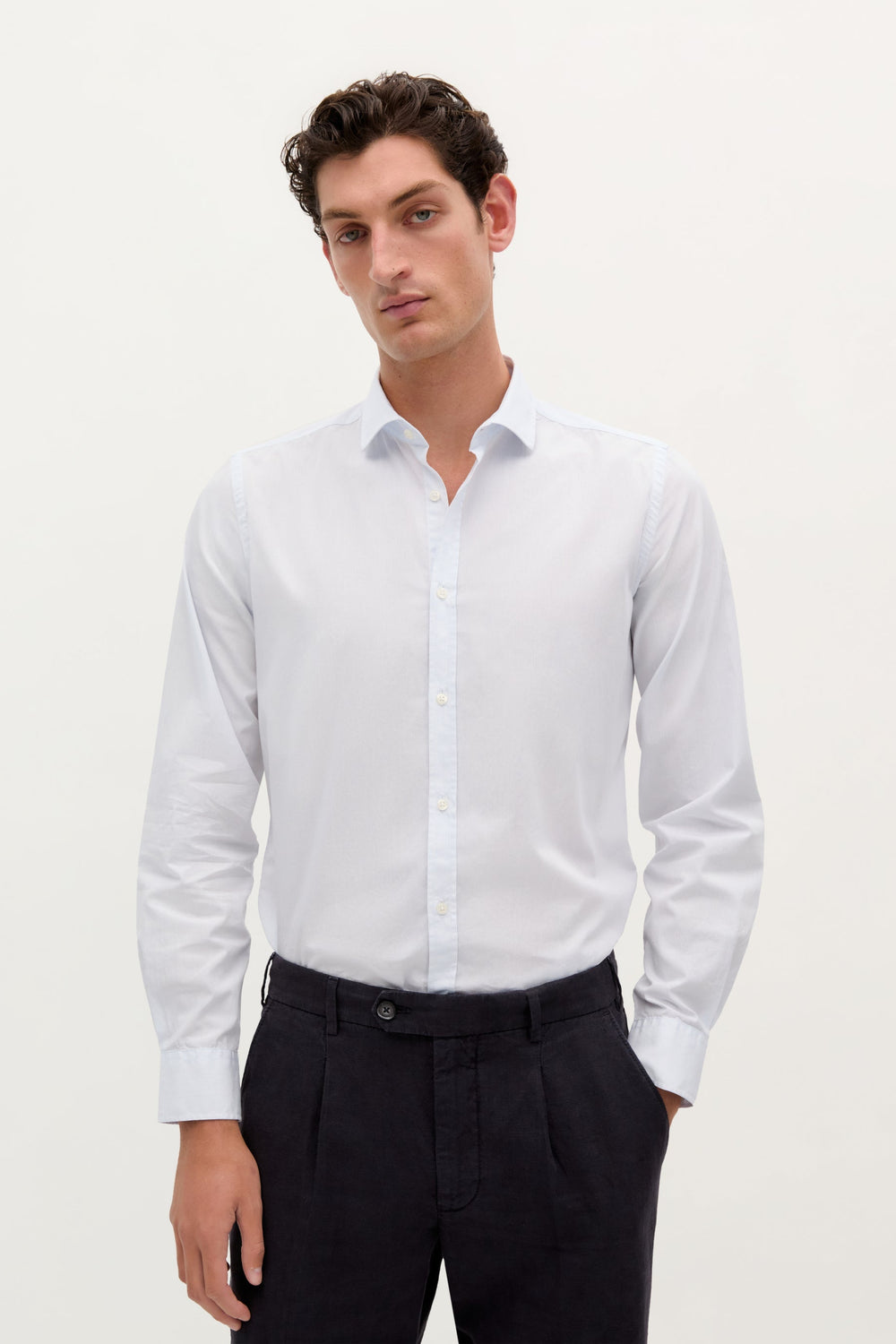 Striped dress shirt. Made of 100% cotton. Slim fit. Italian collar. Button fastening. Long sleeves with cuffs. Embroidered skull on placket.