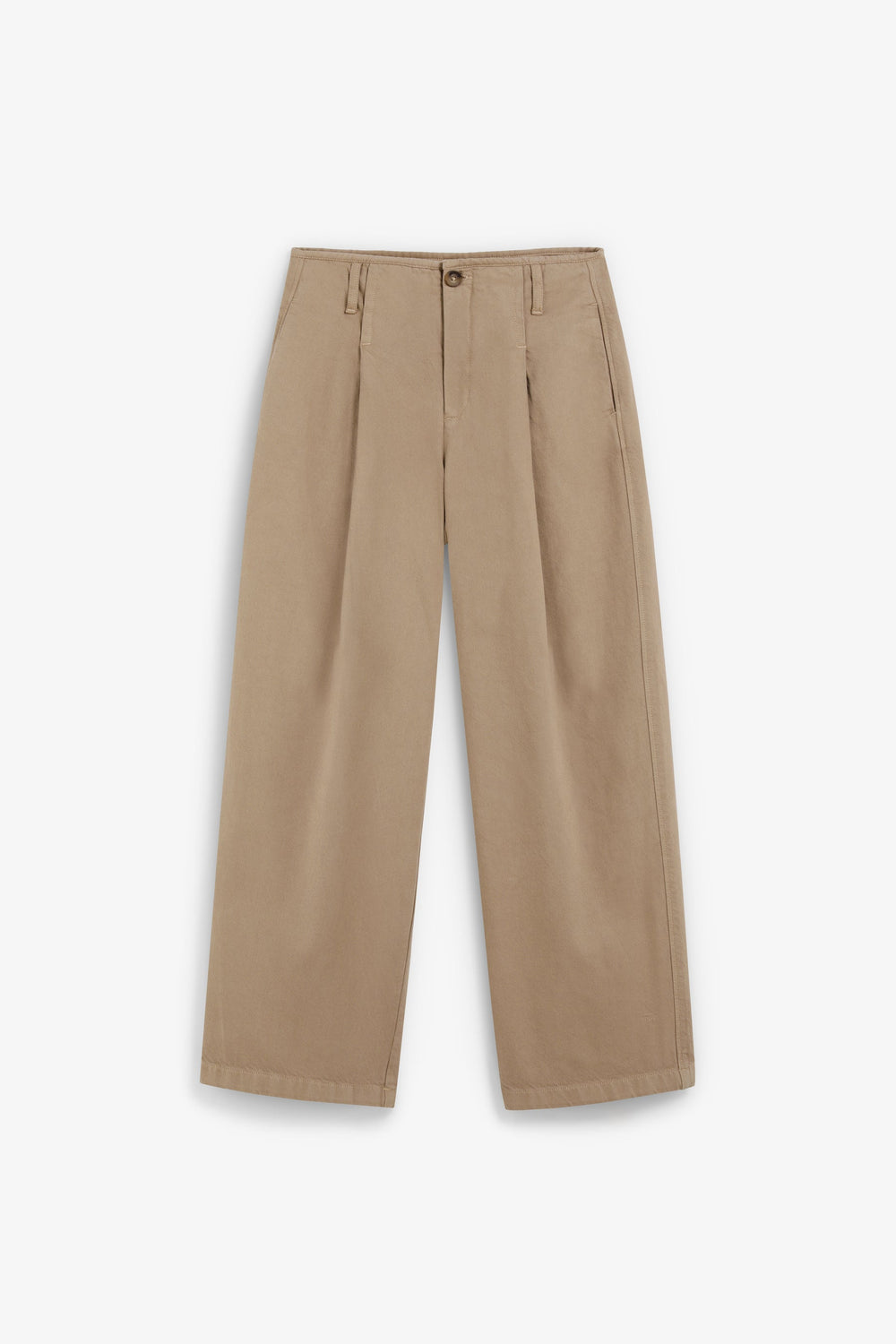 Trousers made of 100% cotton. Wide-leg trousers, designed with a wide, loose-fit from hip to ankle. Button and zip fastening. Belt loops.