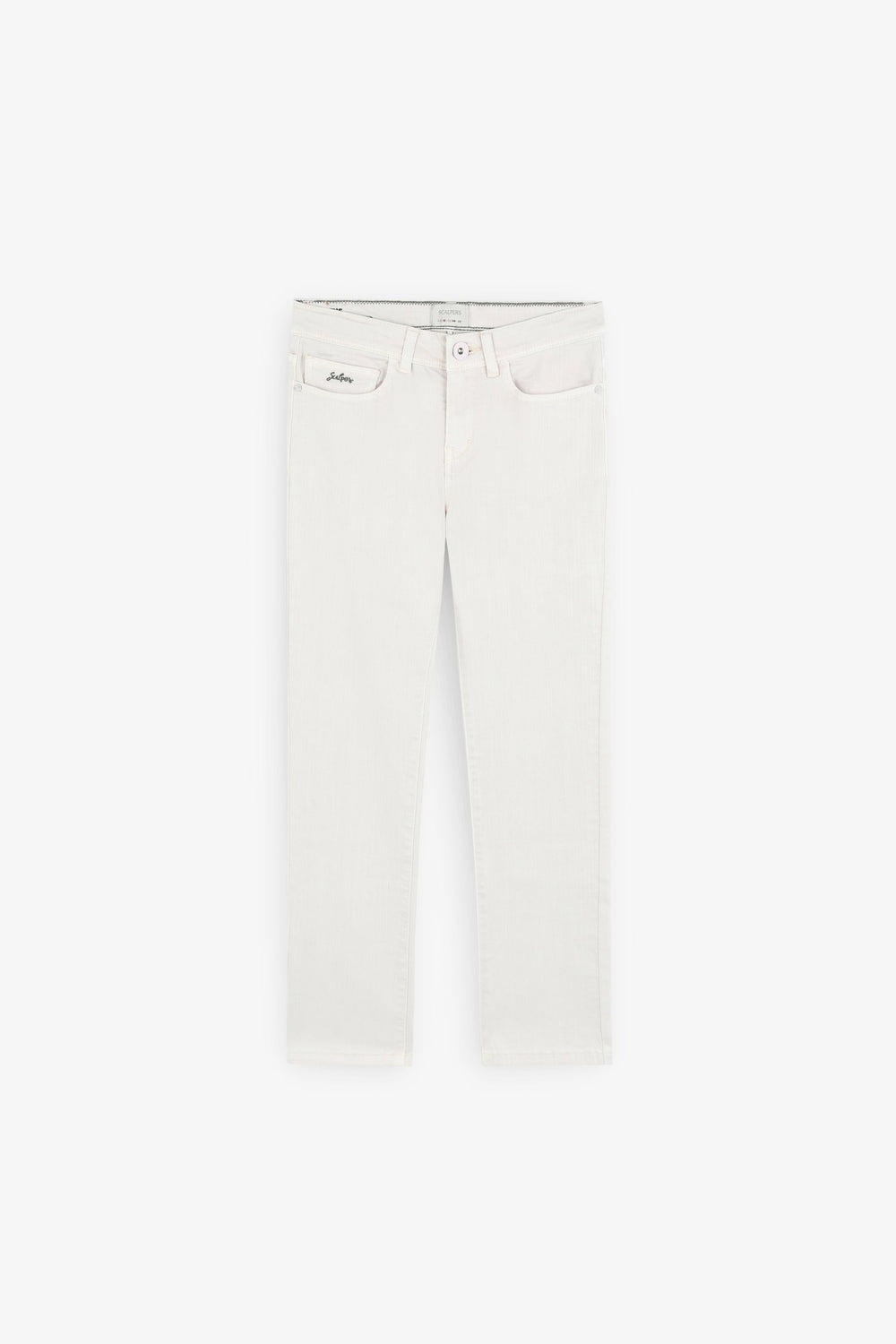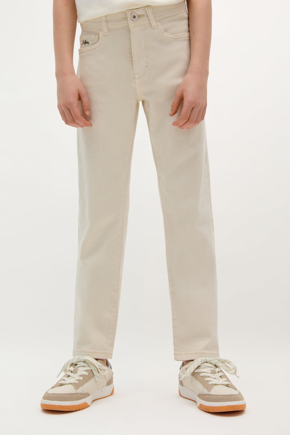 Pantalón confeccionado en algodón ligeramente elástico. Regular fit, cierre con botón y cremallera y bolsillos laterales y traseros. Trabillas en cintura y bordado de logo.
