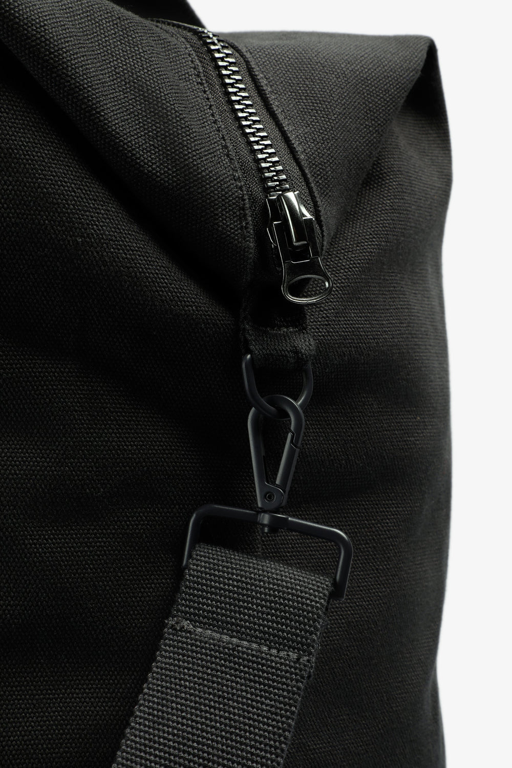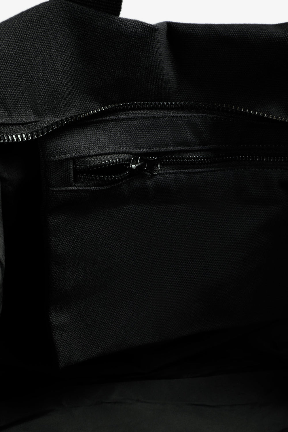 Bag made of 100% cotton. Short double handle. Long detachable strap. Contrast skull print and logo on front. Zip closure.