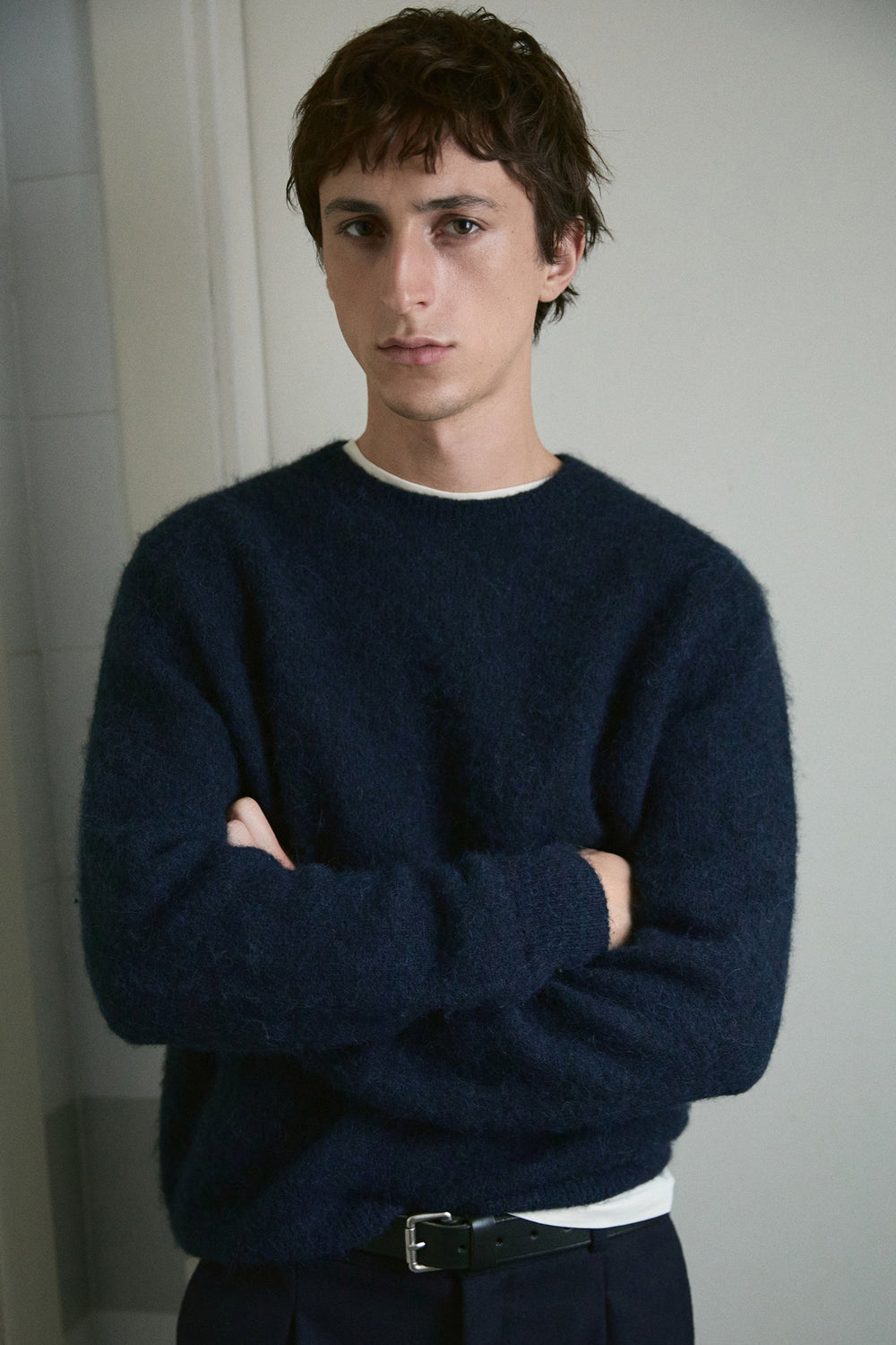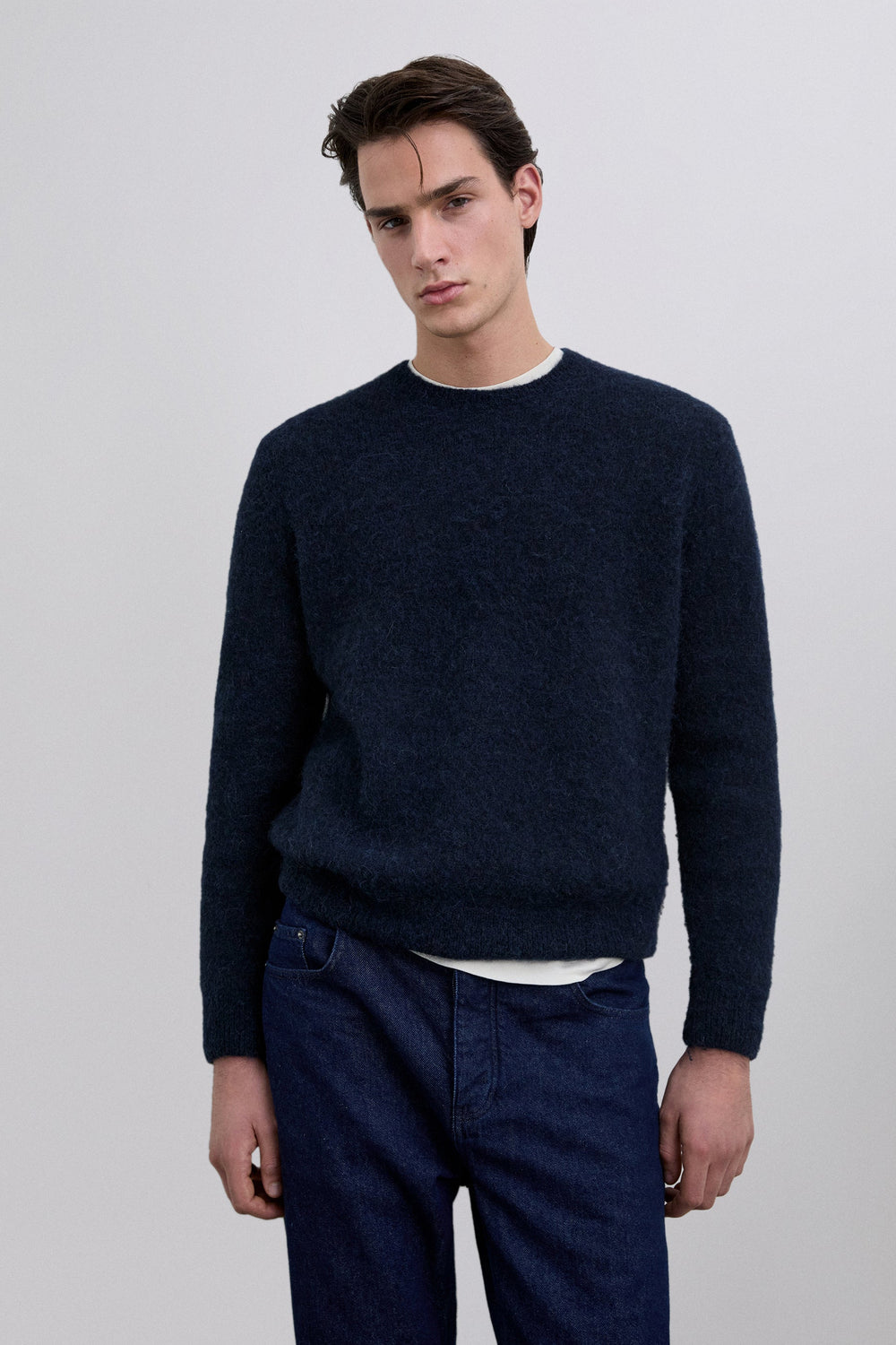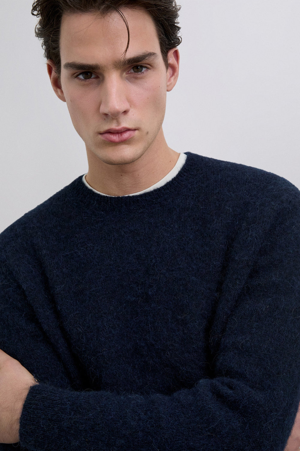 Trui van geborstelde alpaca. Ronde hals. Lange mouwen. Regular fit.