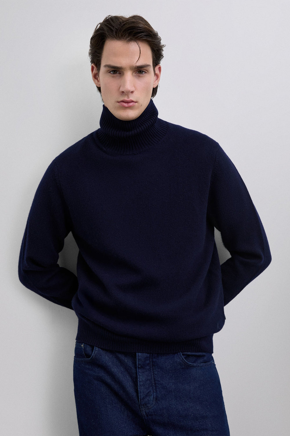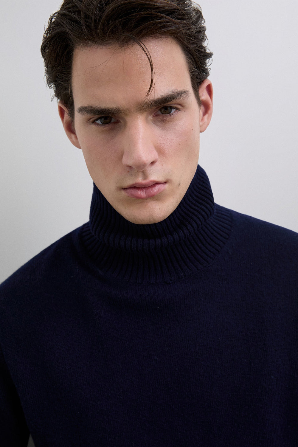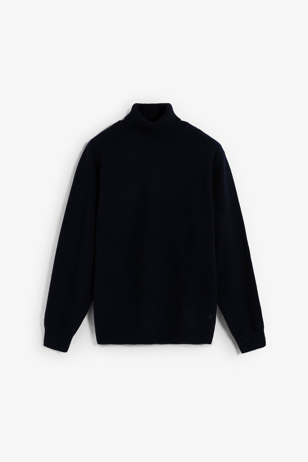Trui gemaakt van wol- en kasjmiermix. Hoge kraag. Lange mouw. Ribboorden.
