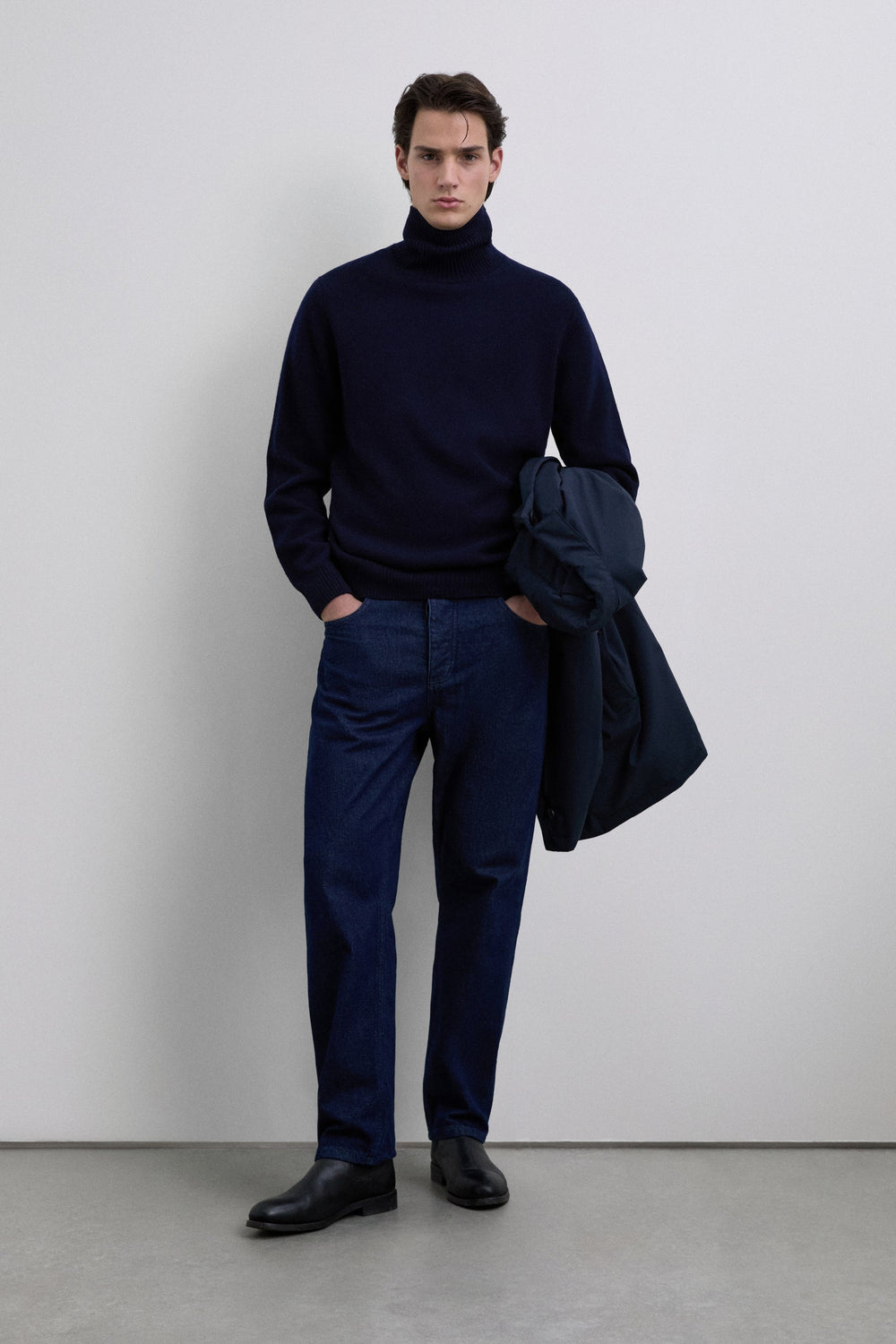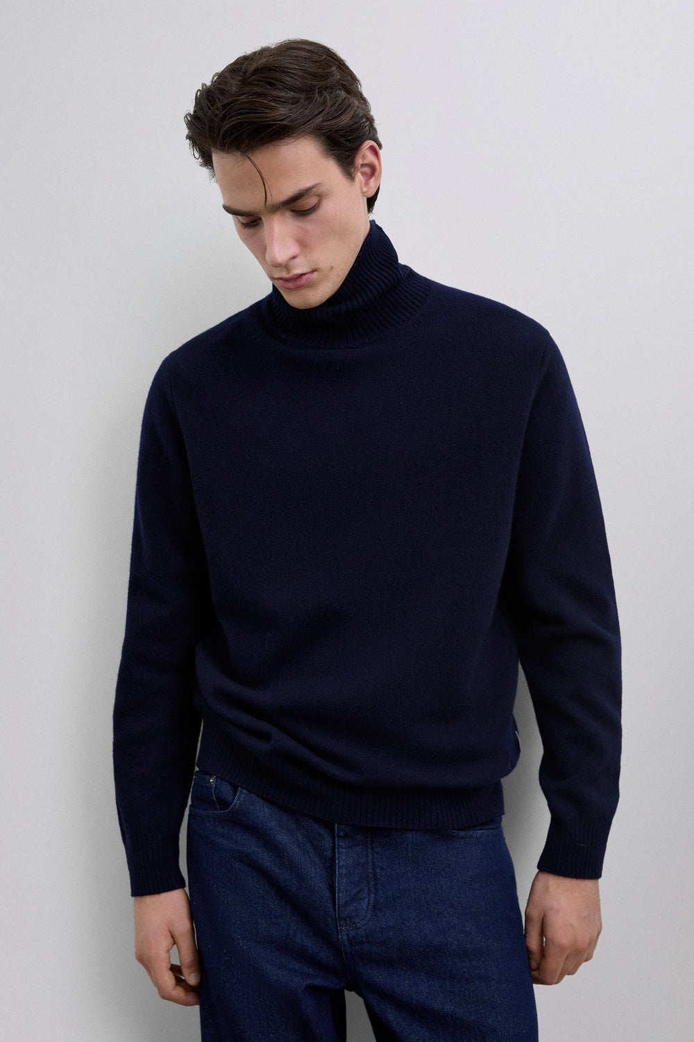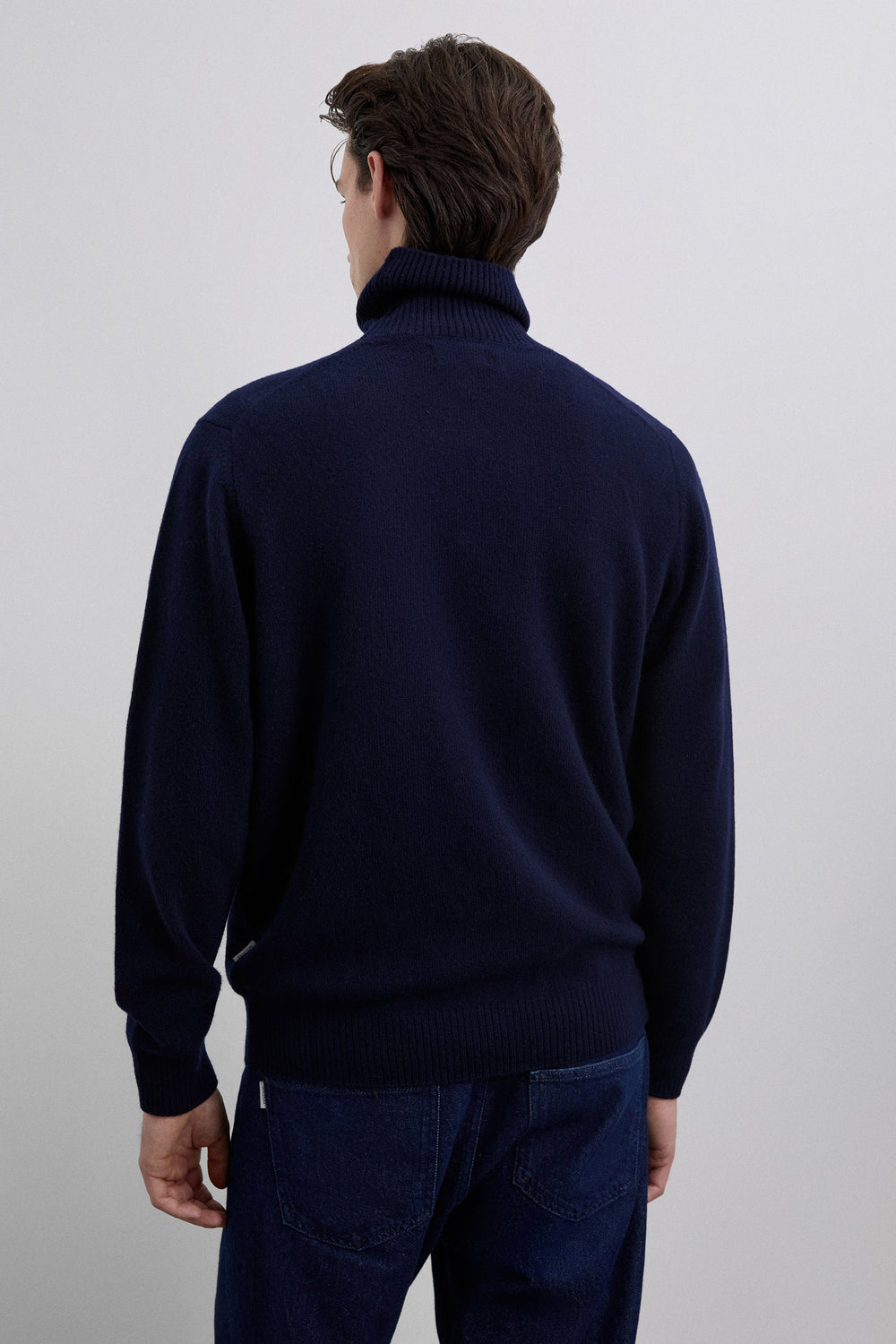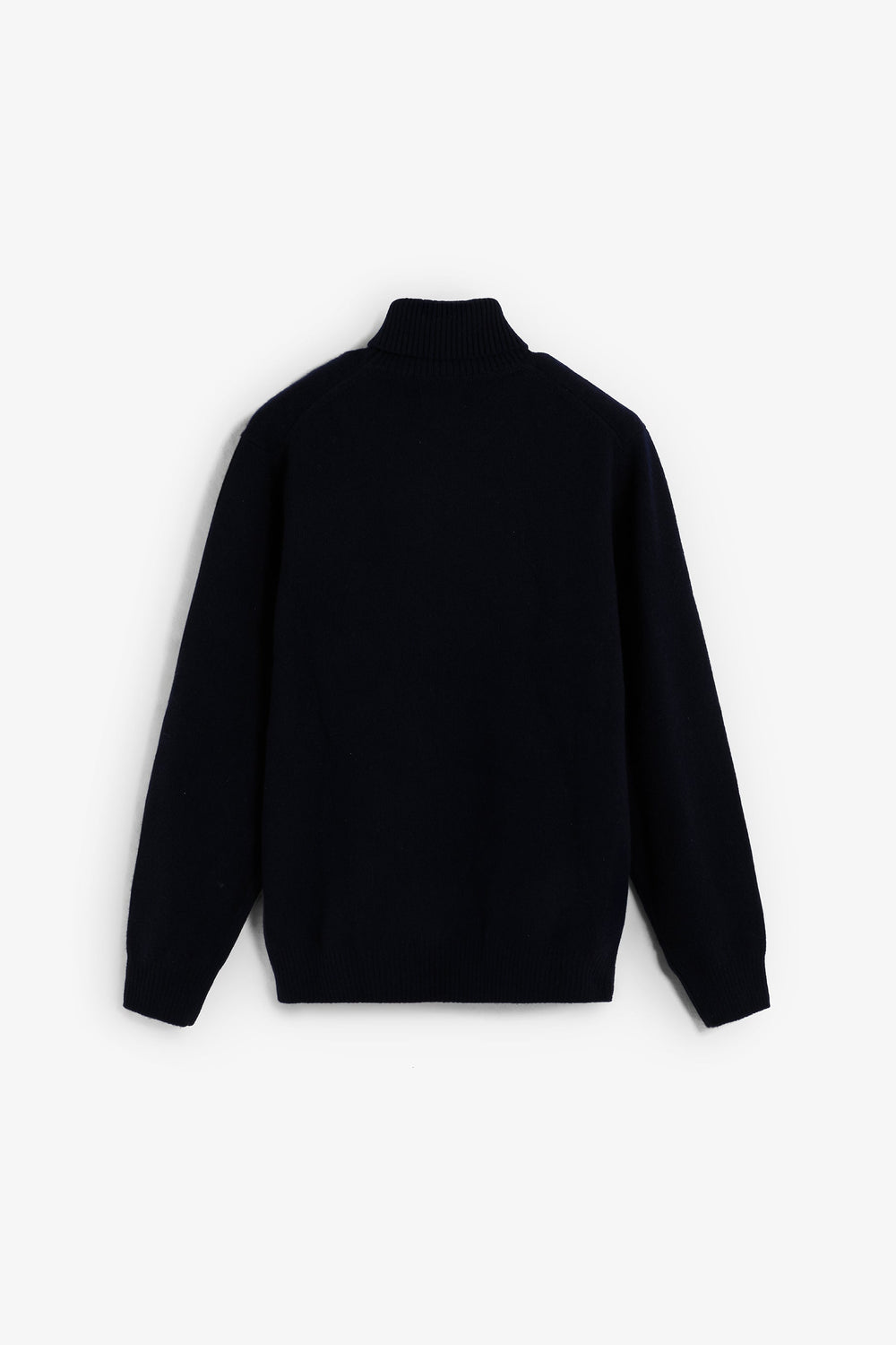Trui gemaakt van wol- en kasjmiermix. Hoge kraag. Lange mouw. Ribboorden.