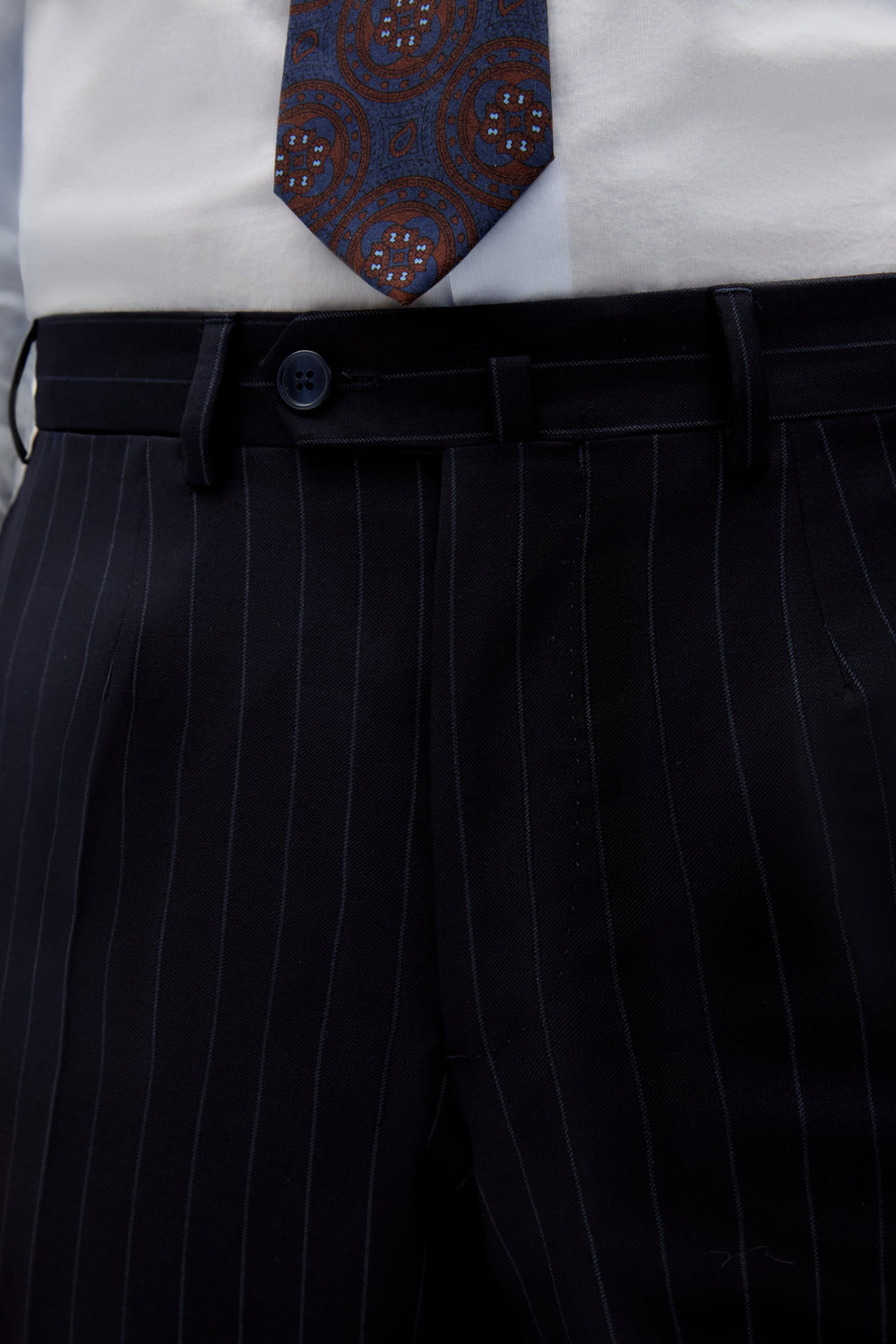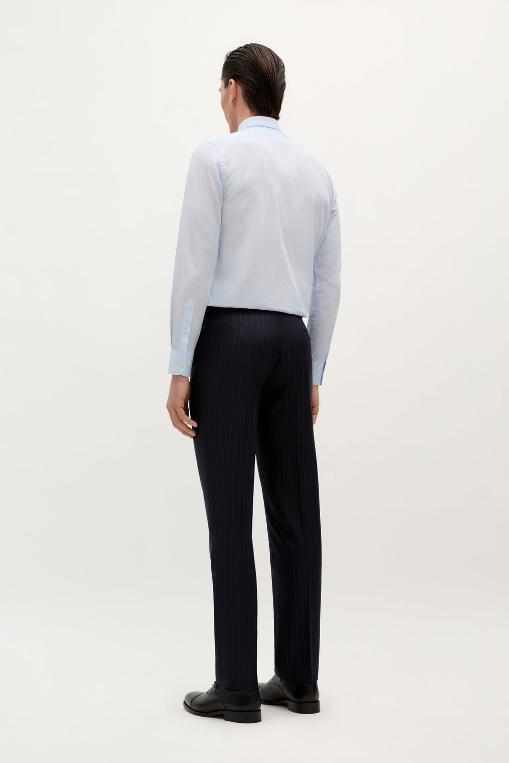 Trousers made of 100% Italian wool. Fastens with concealed zip, hook-and-eye fastening and buttoned placket. Two side pockets. Buttoned buttonhole pockets at the back. Made in Portugal.