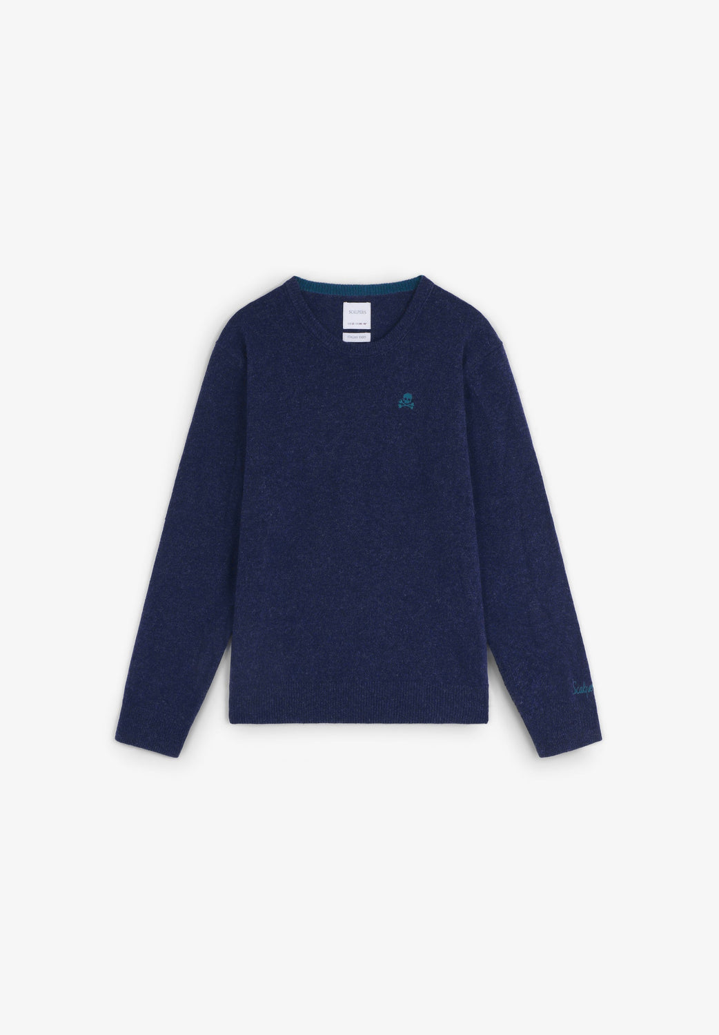 Trui gemaakt van wol- en polyamidemix. Regular fit. Ronde hals. Lange mouw. Geborduurd contrasterend doodshoofd. Ribboorden Contrasterend doodshoofd op de elleboog.