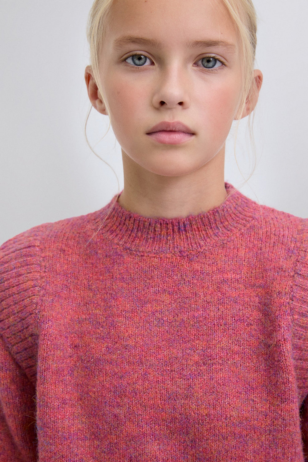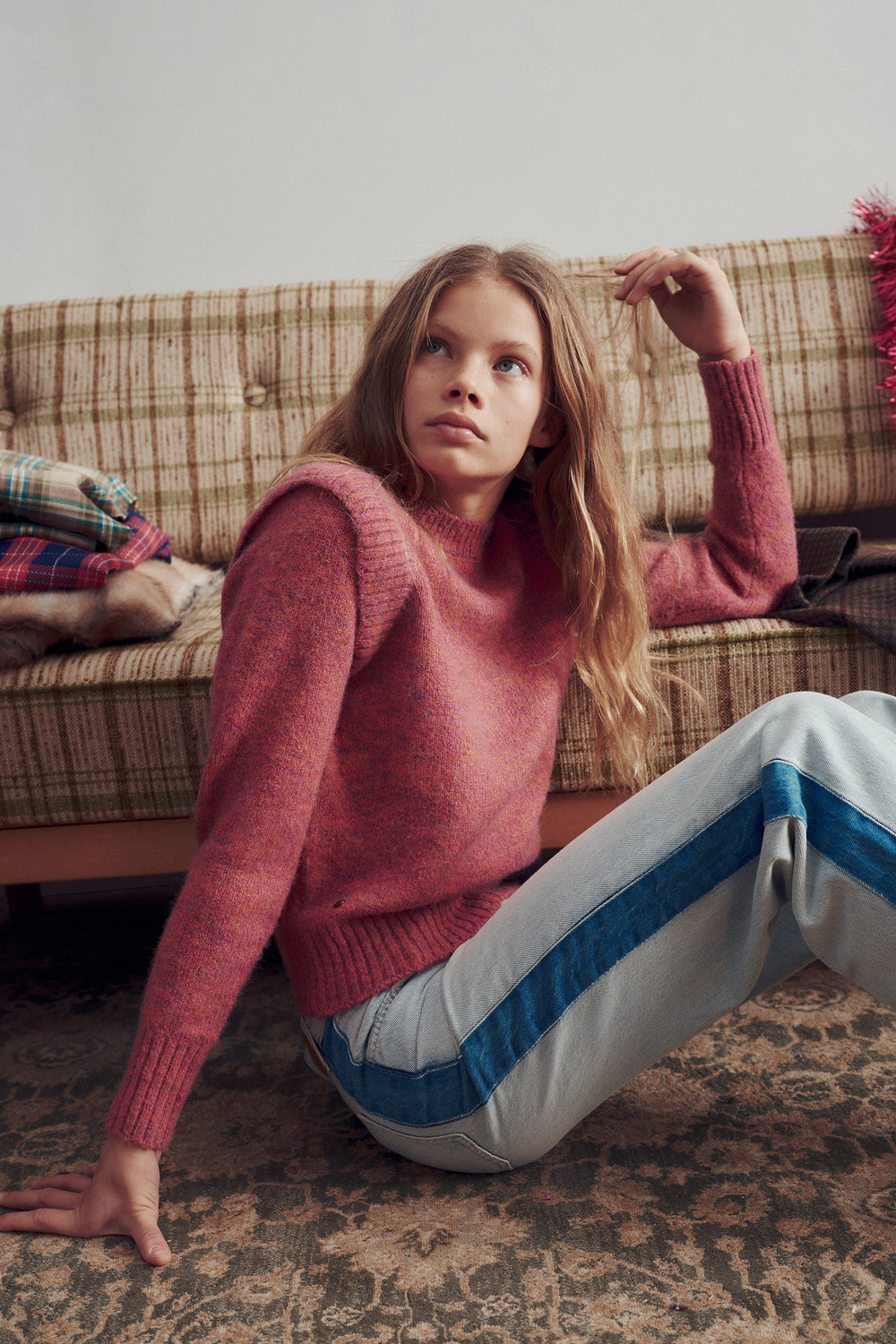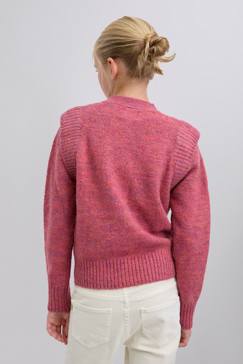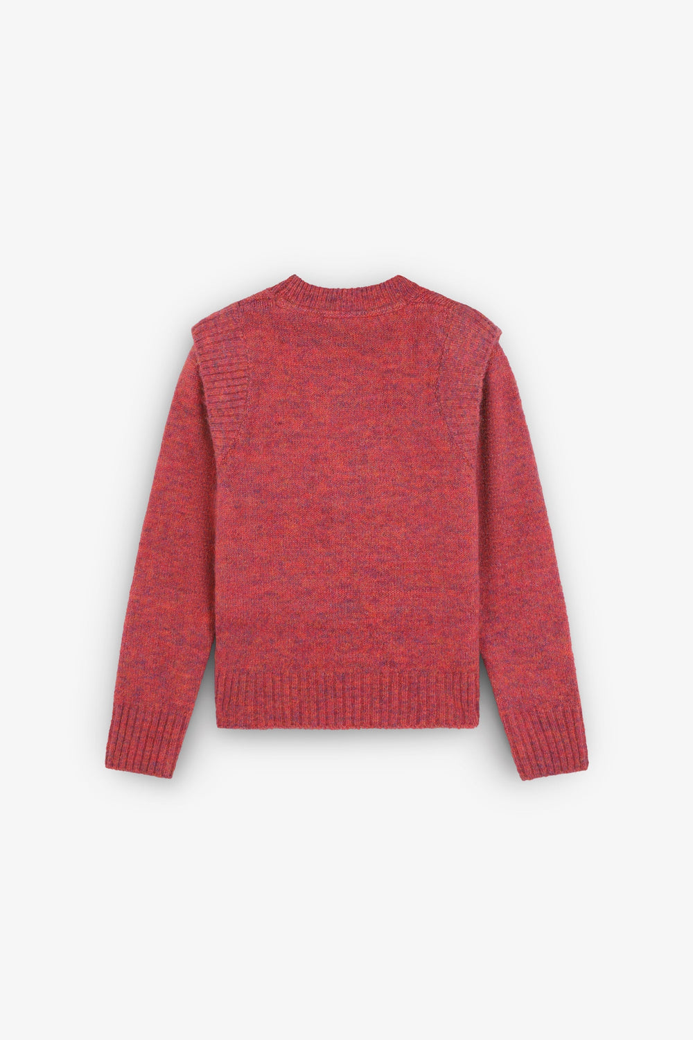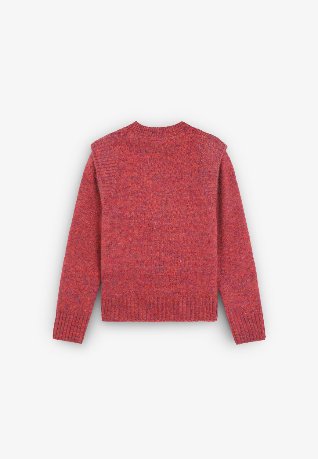 Gebreide trui. Lange mouw. Ronde hals. Ribboorden Metalen doodshoofd.