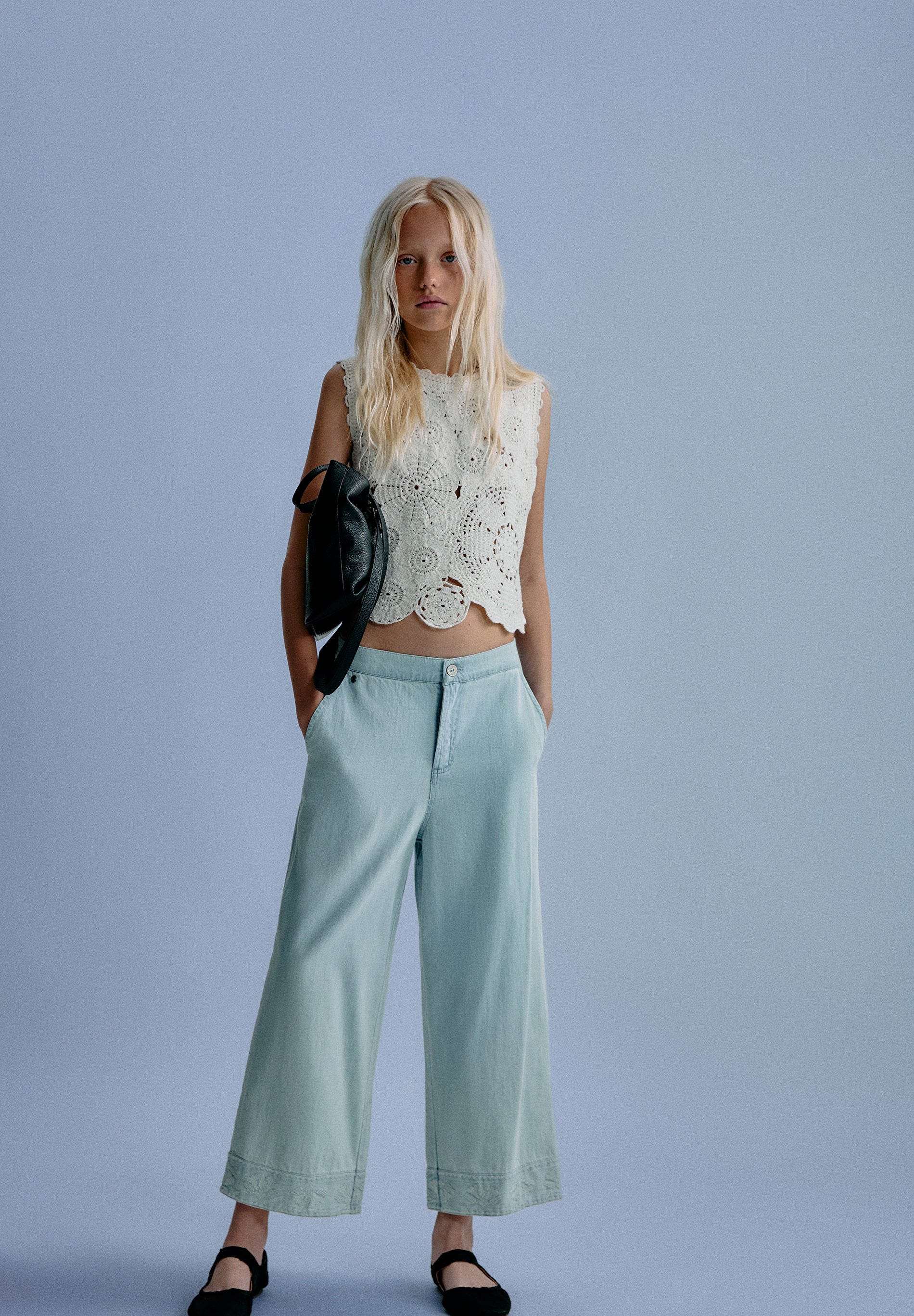 WIDE LEG TROUSERS WITH EMBROIDERED STARS