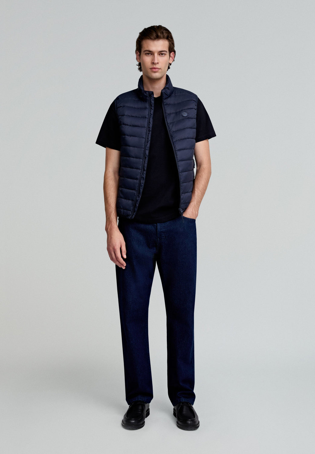 - Bodywarmer gemaakt van een gerecyclede en waterafstotende stof van nylon en polyester. Pasvorm slim fit, opstaande hals en sluiting met tweewegrits.