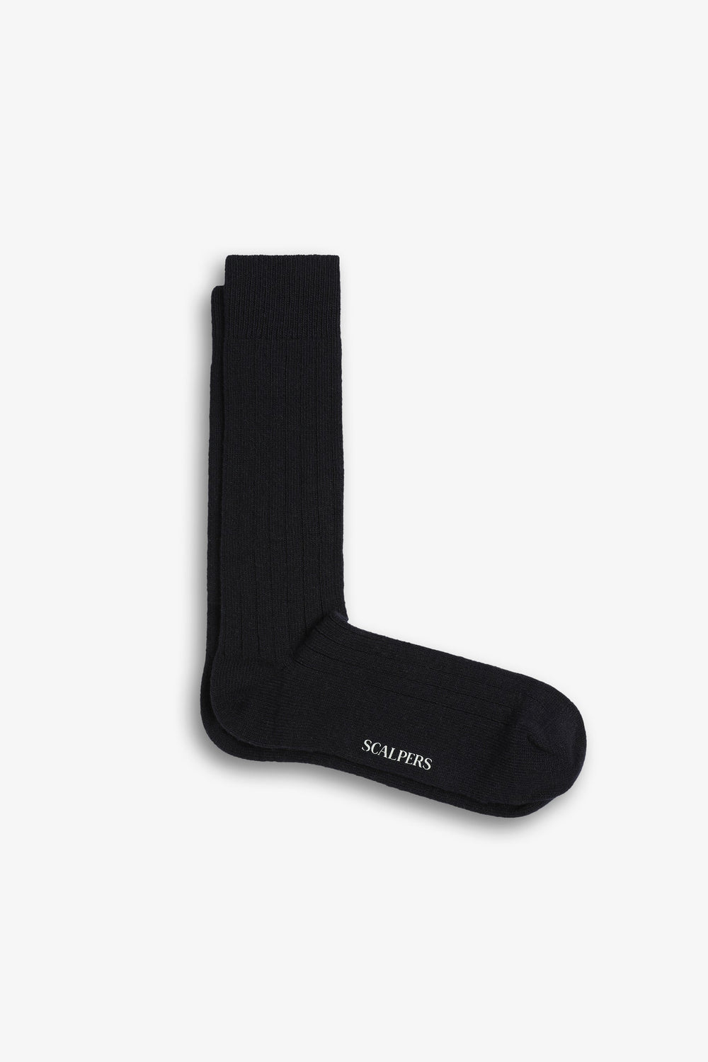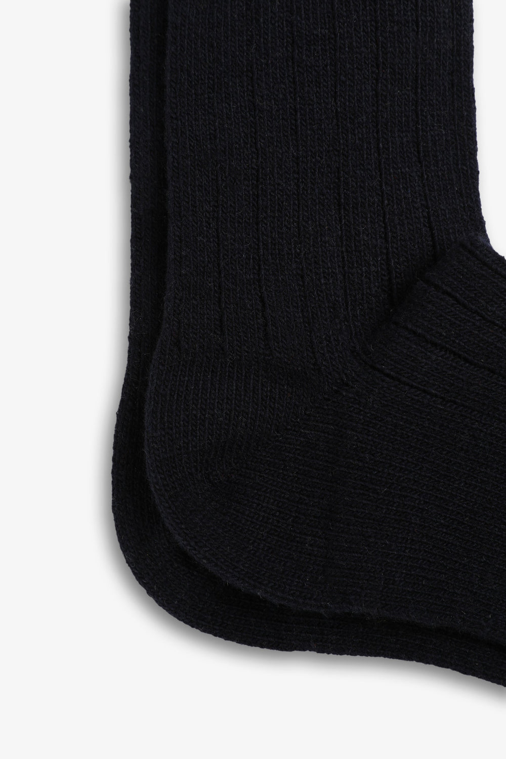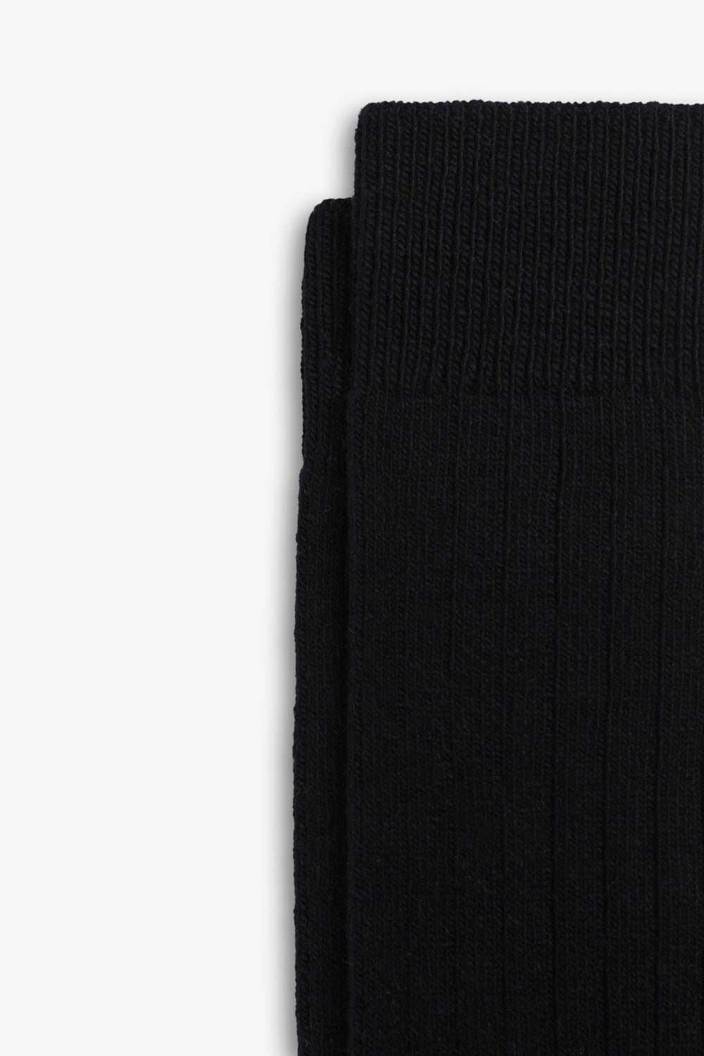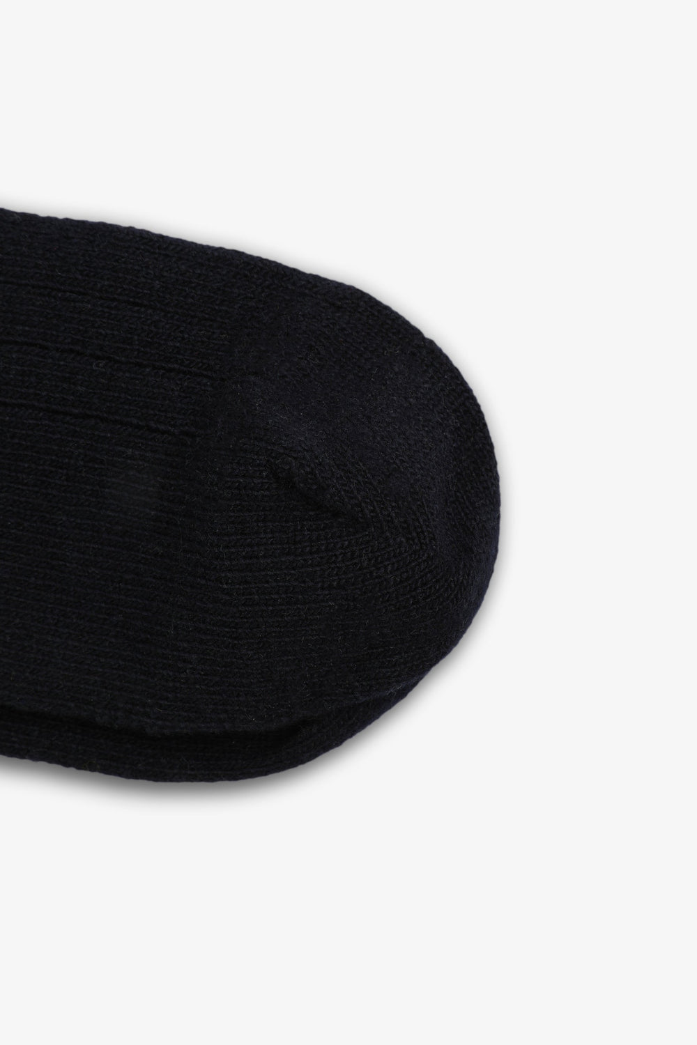 Calcetines confeccionados con tejido en mezcla de Cashmere y Lana. Logitud media. Ajuste cómodo. No aprieta el tobillo. Canalé fino. Detalle de logo en planta.