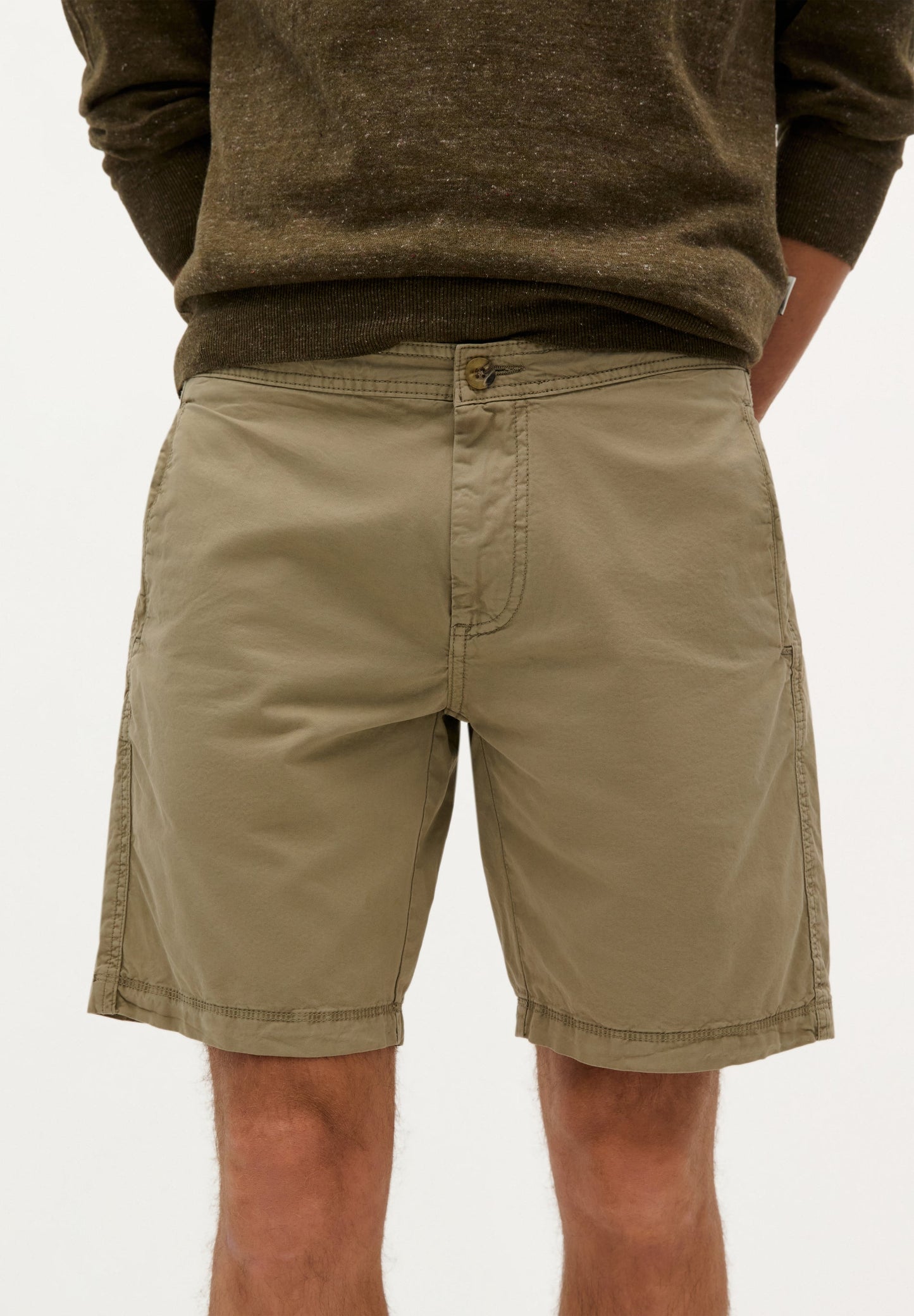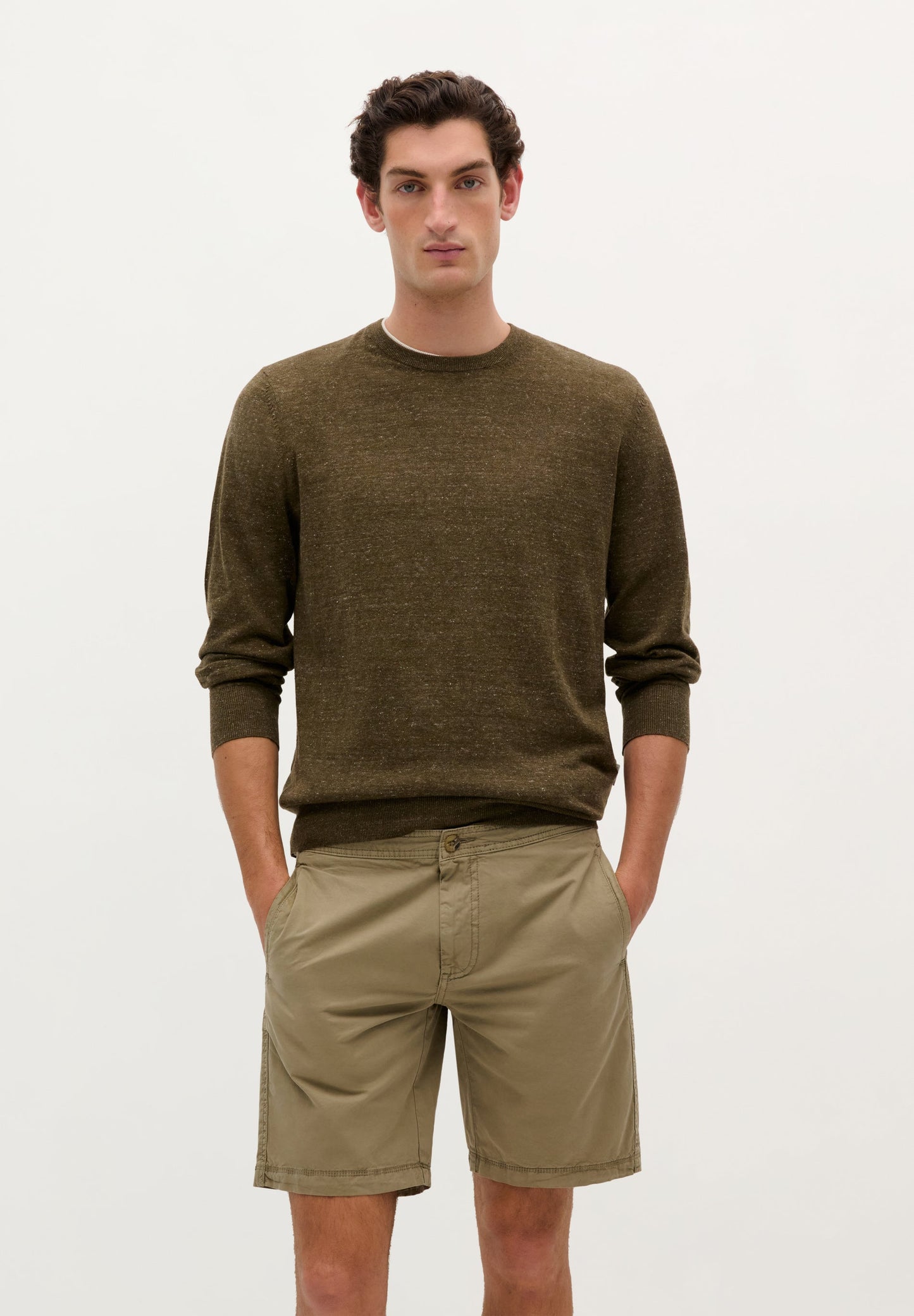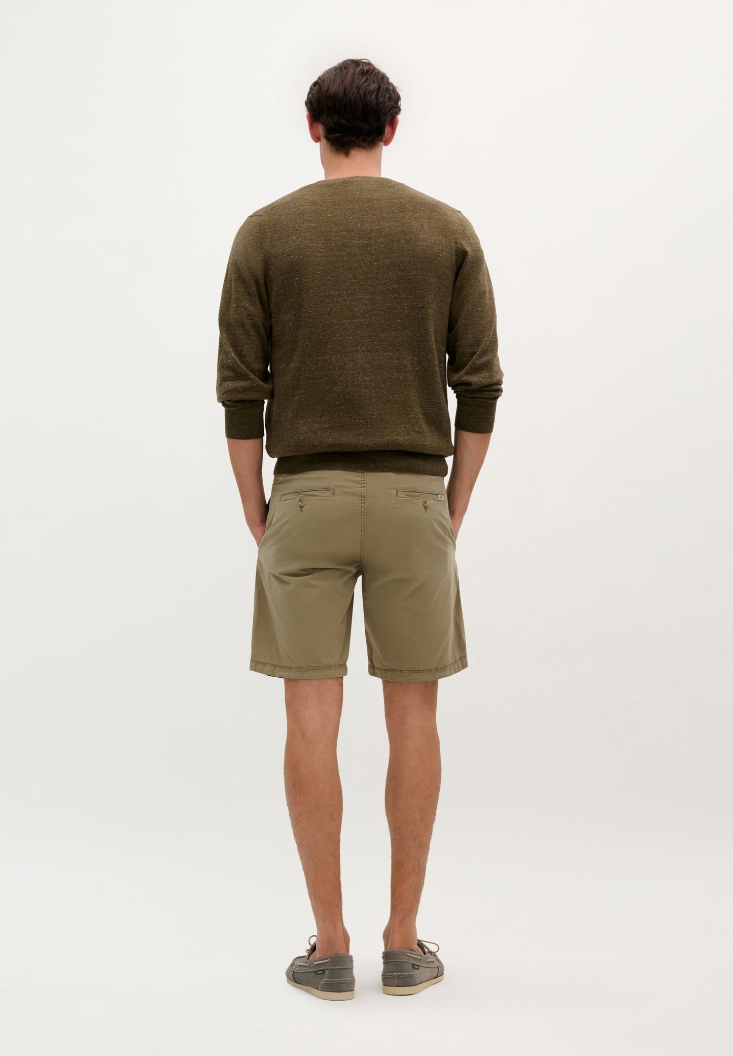 Bermuda van 100% katoen met stiksel aan de voorkant. Rits en knoopsluiting. Schuine zakken en achterzakken met knoop.
