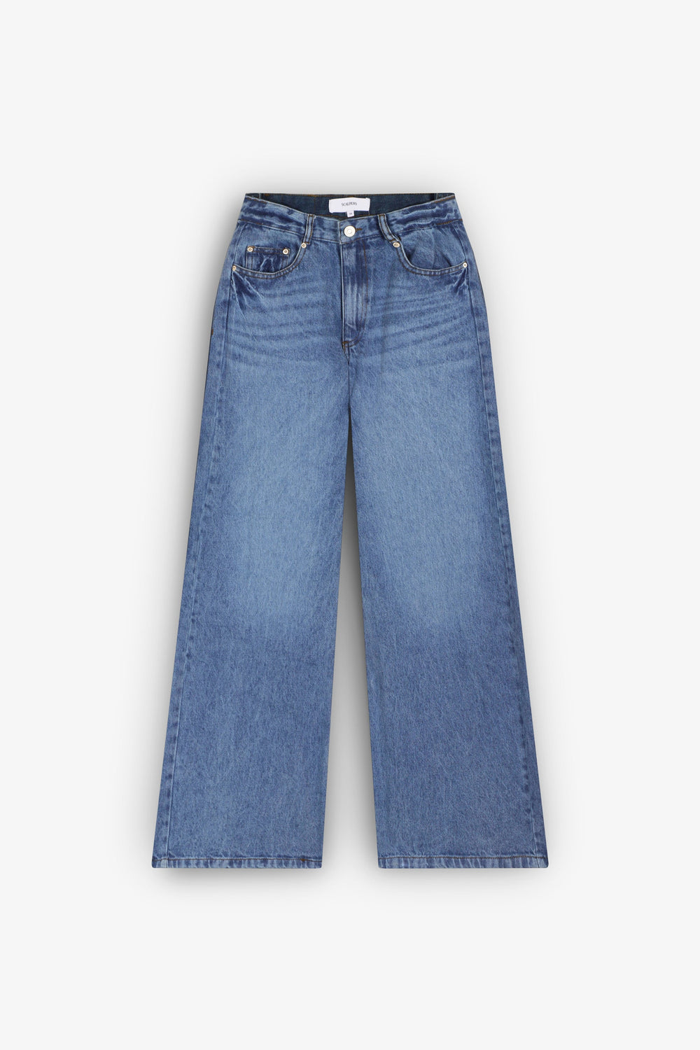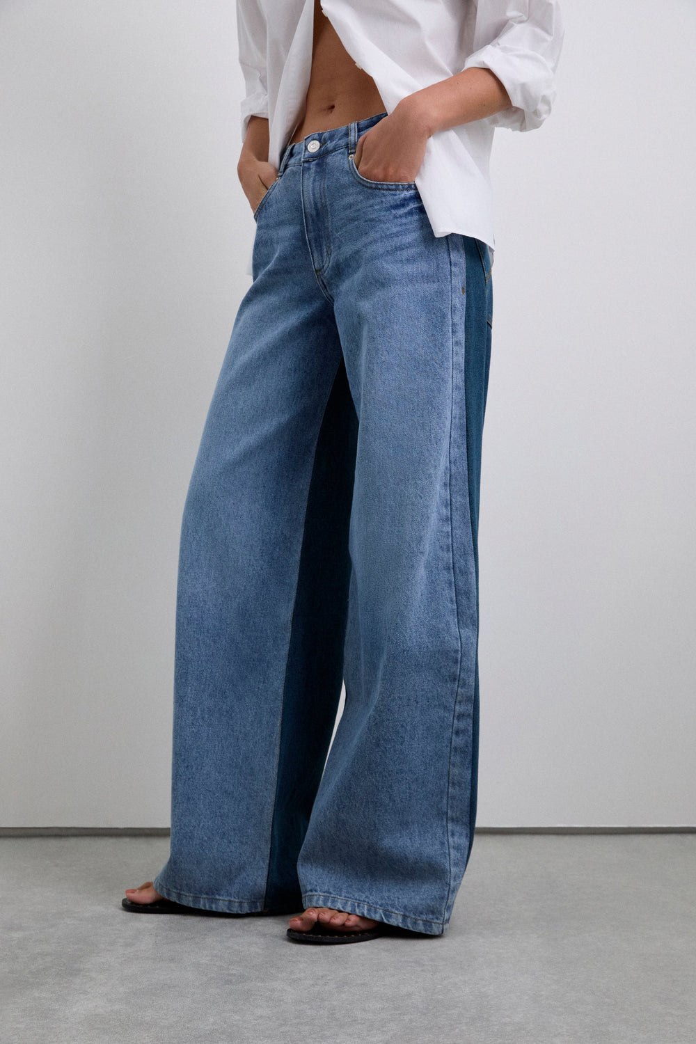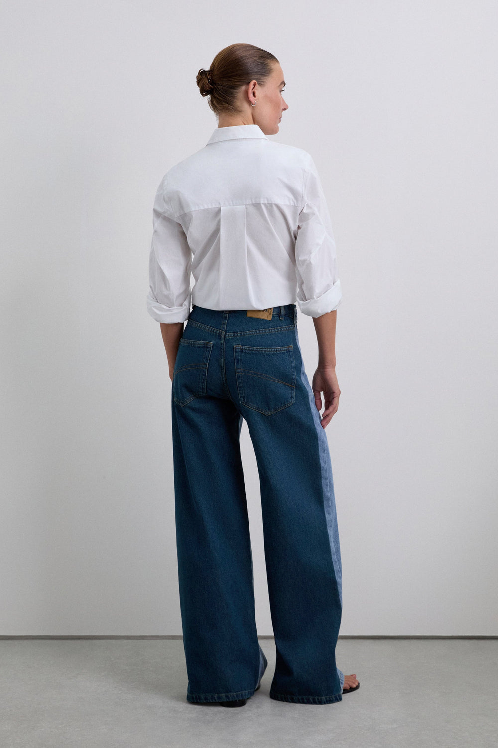 Denim trousers made of 100% cotton. regular fit, two-tone, zip and button fastening, belt loops, five pockets.