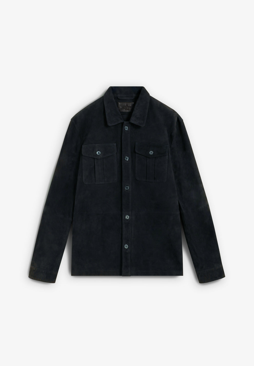 Overshirt made of 100% suede. Two chest pockets. Adjustable cuffs. Mother-of-pearl button fastening.
