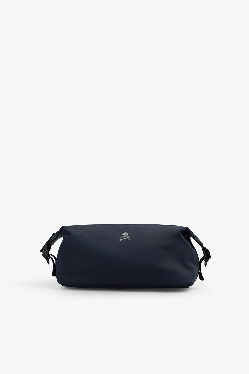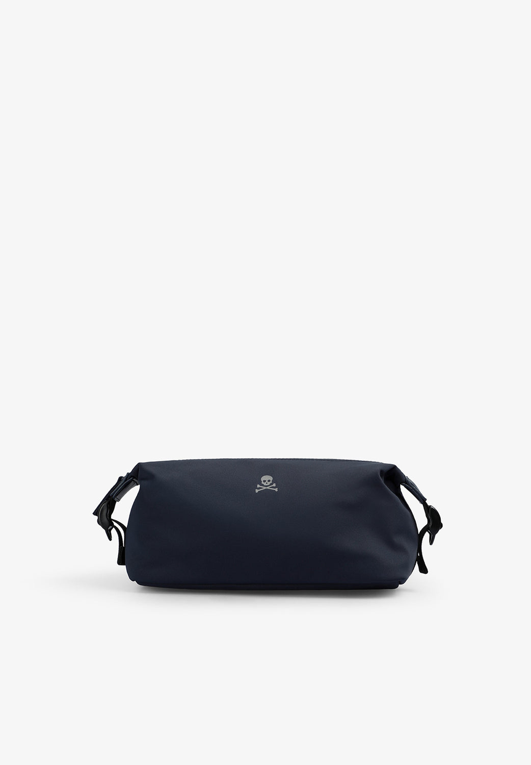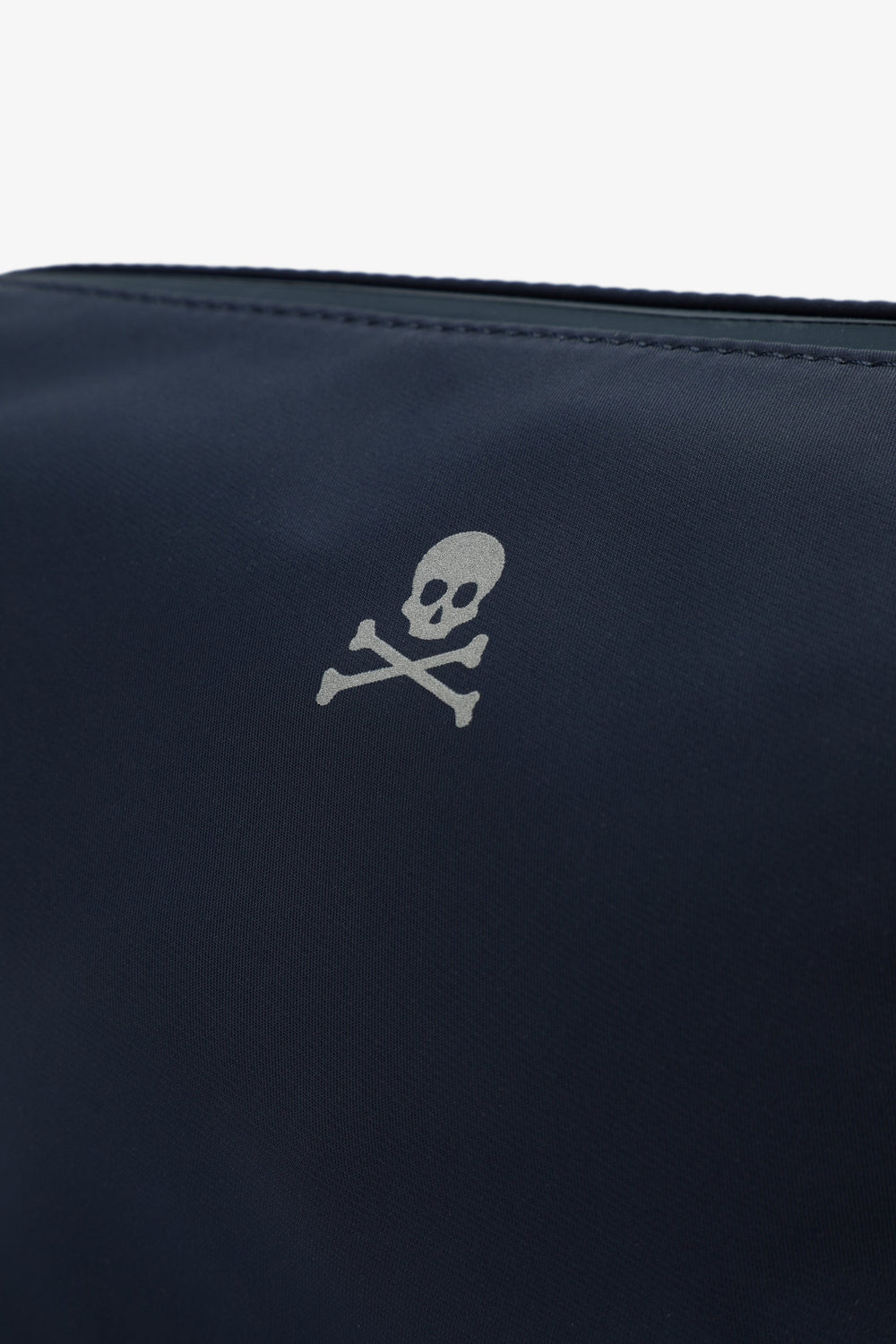 Technical travel toiletry bag with adjustable side straps and inner pocket, contrast reflective skull.