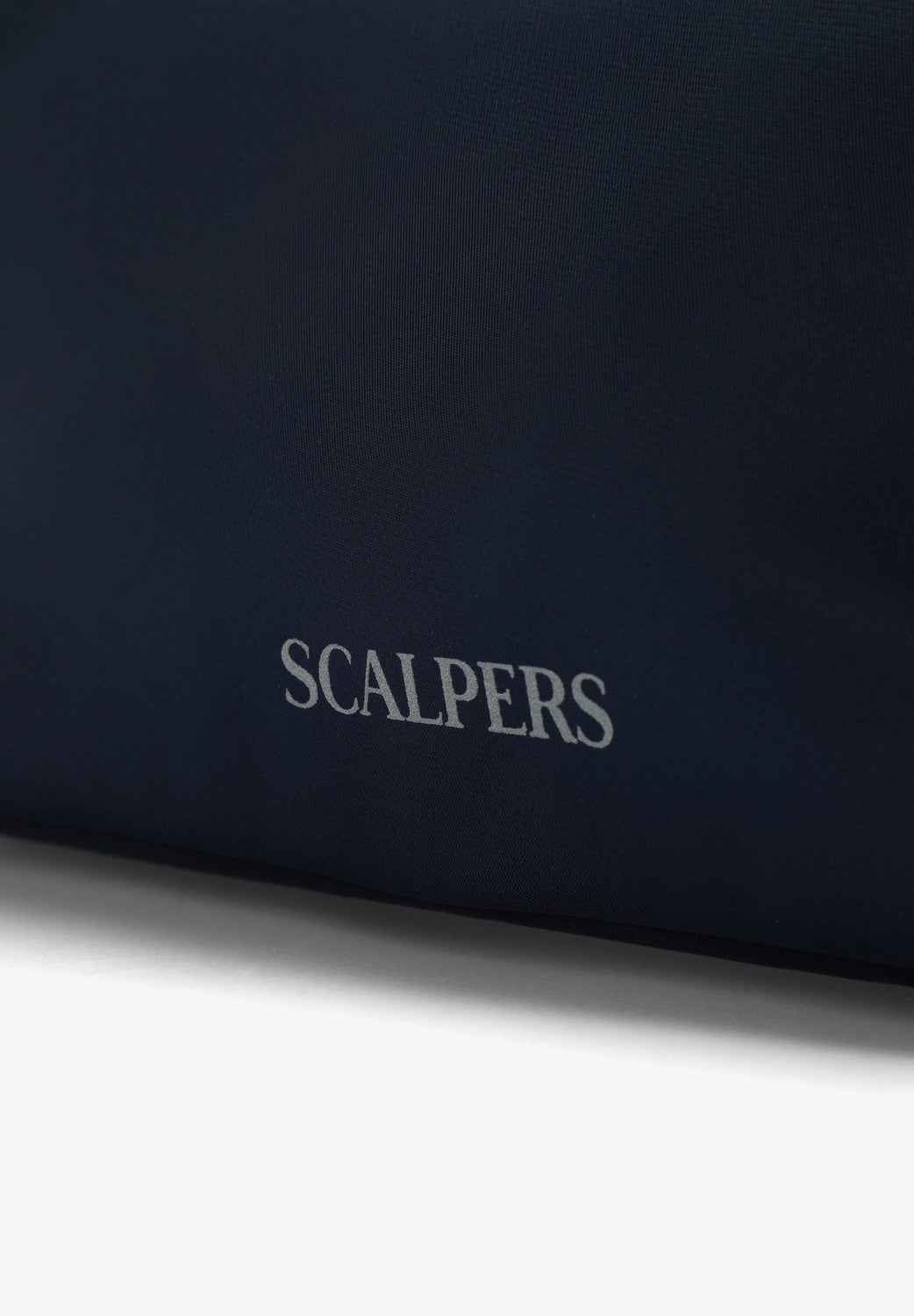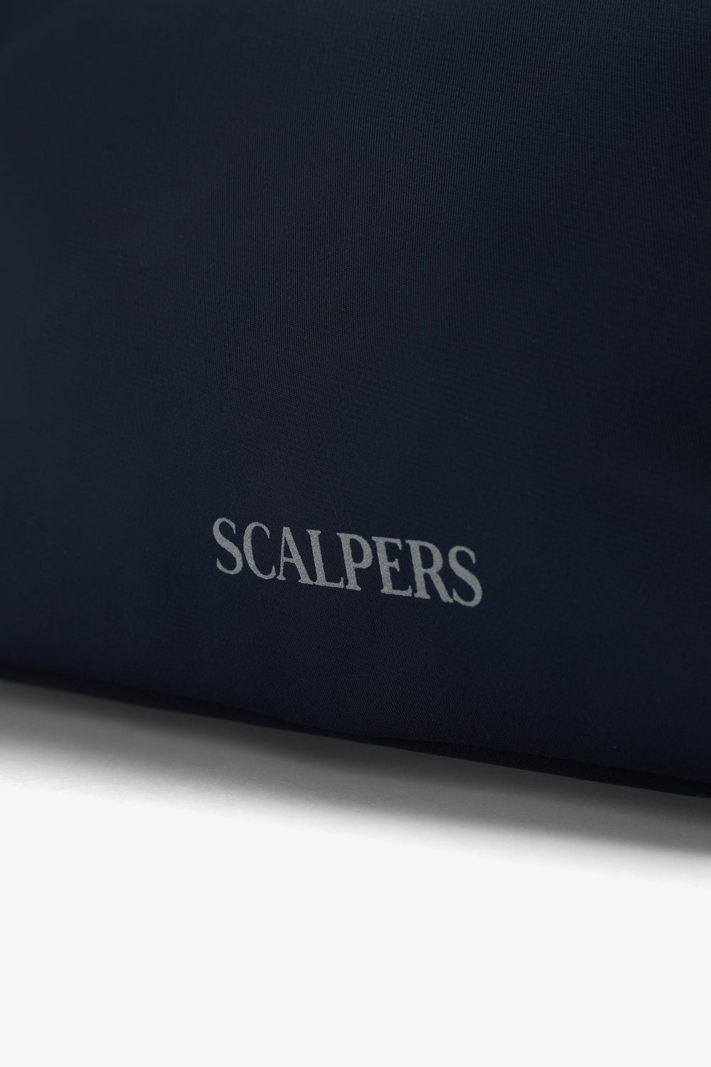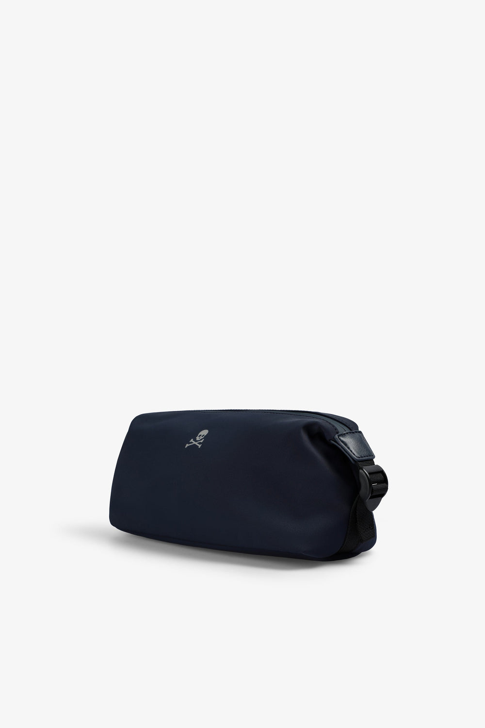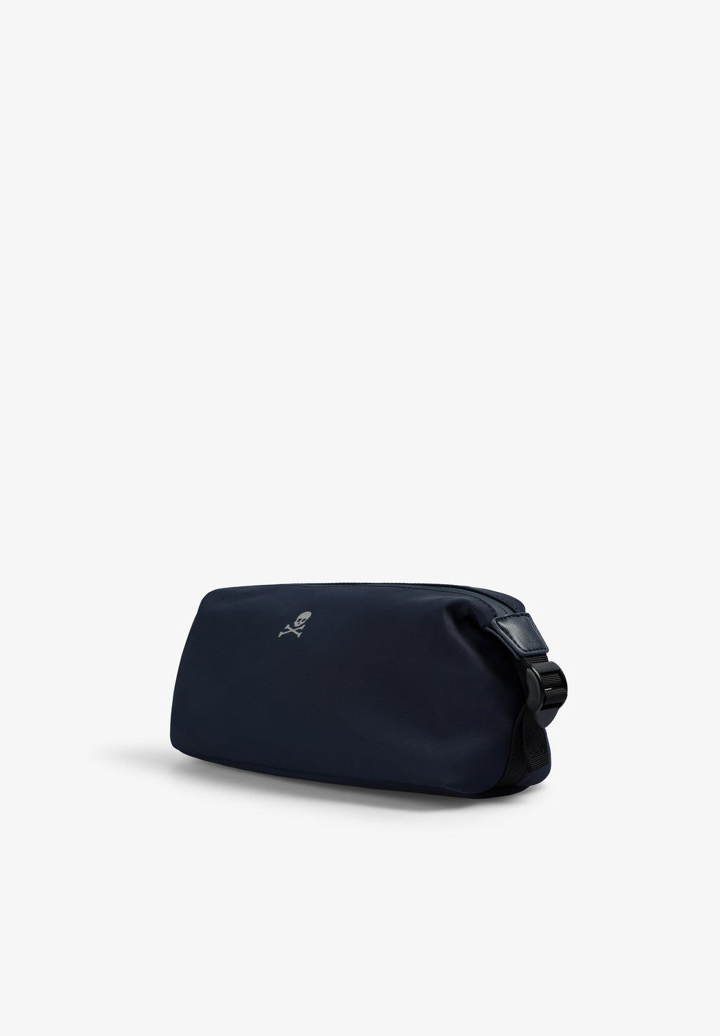 Technical travel toiletry bag with adjustable side straps and inner pocket, contrast reflective skull.
